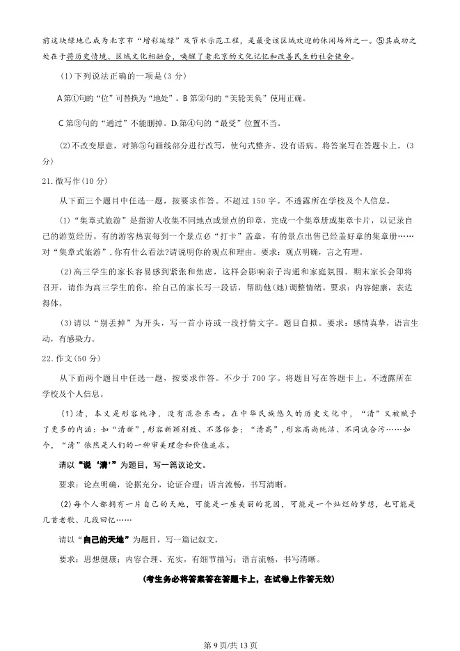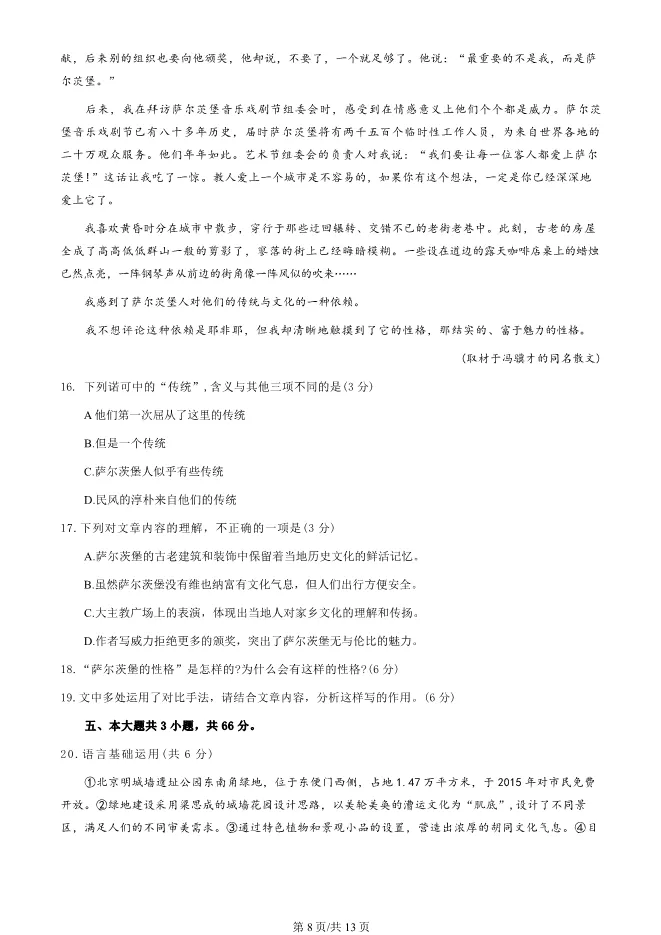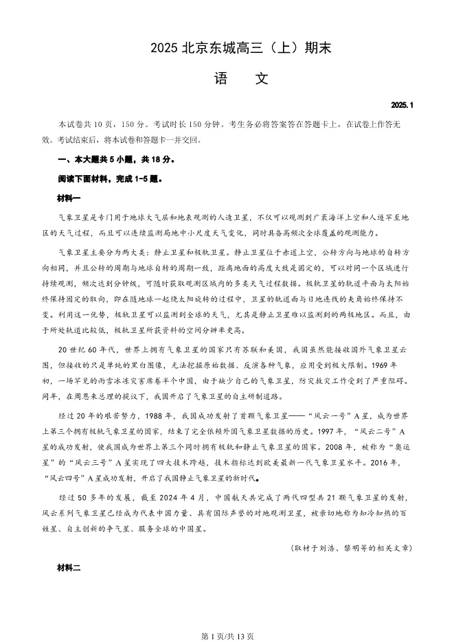 2025北京东城高三上册期末语文试卷(有答案) 电子版试卷获取,后台回复:试卷