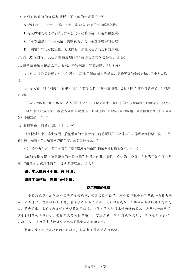 26届虹口区高三二模试卷