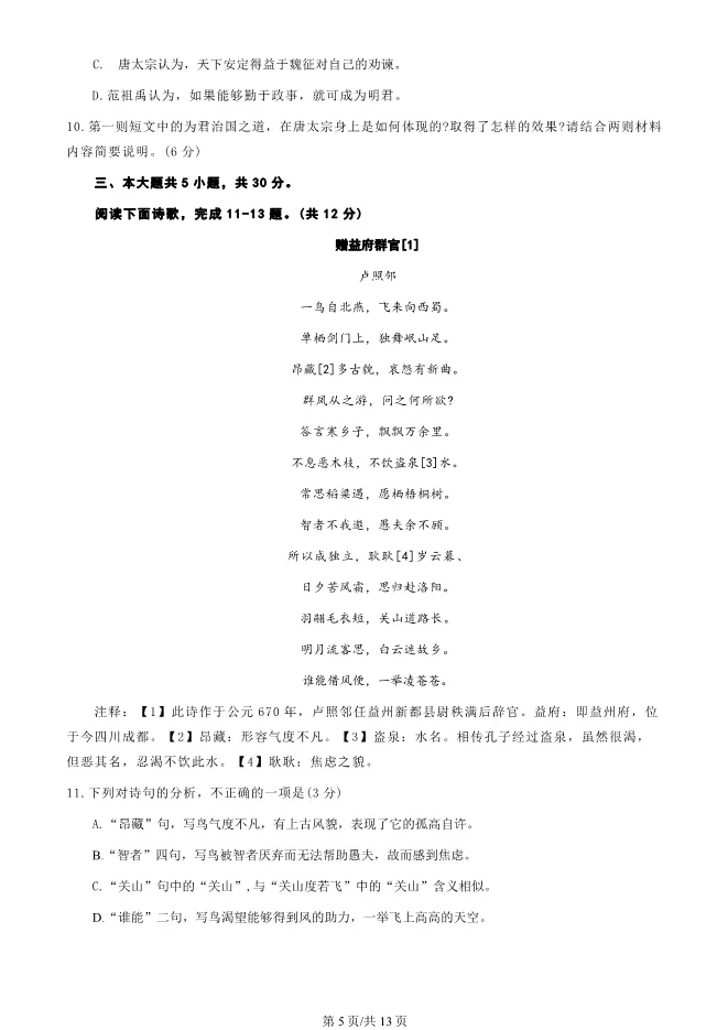 2025北京东城高一上册期末语文试卷(有答案)【可下载】