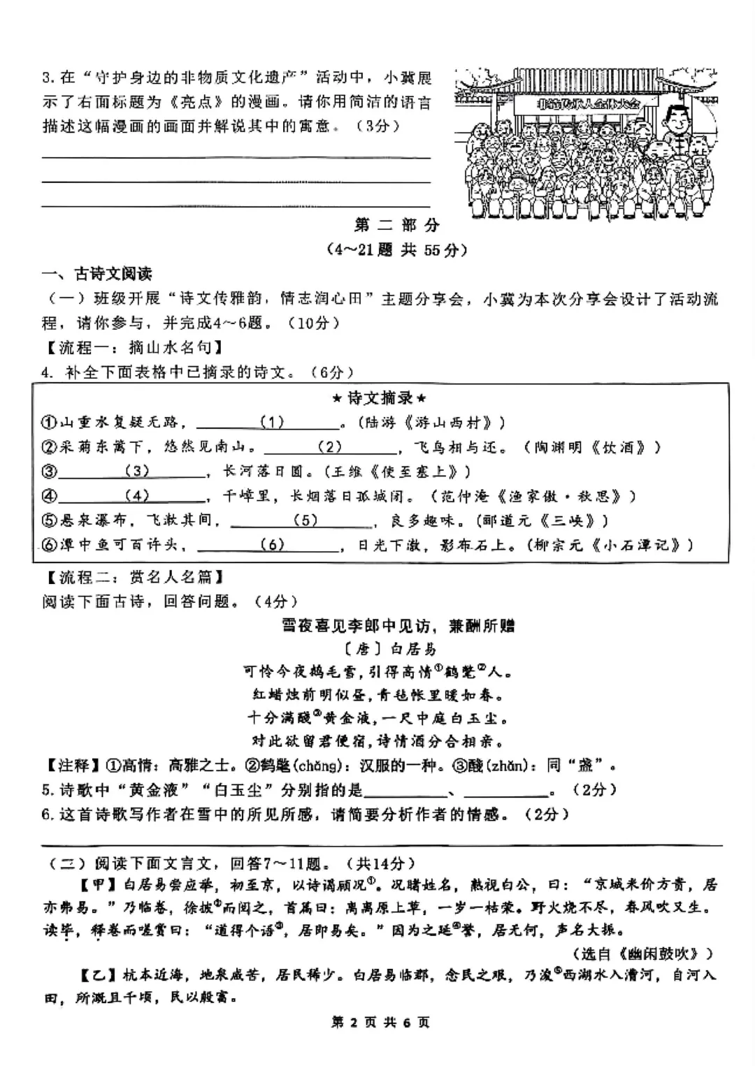2025北京二中初二上册期末语文试卷(阅读)(有答案)【可下载】