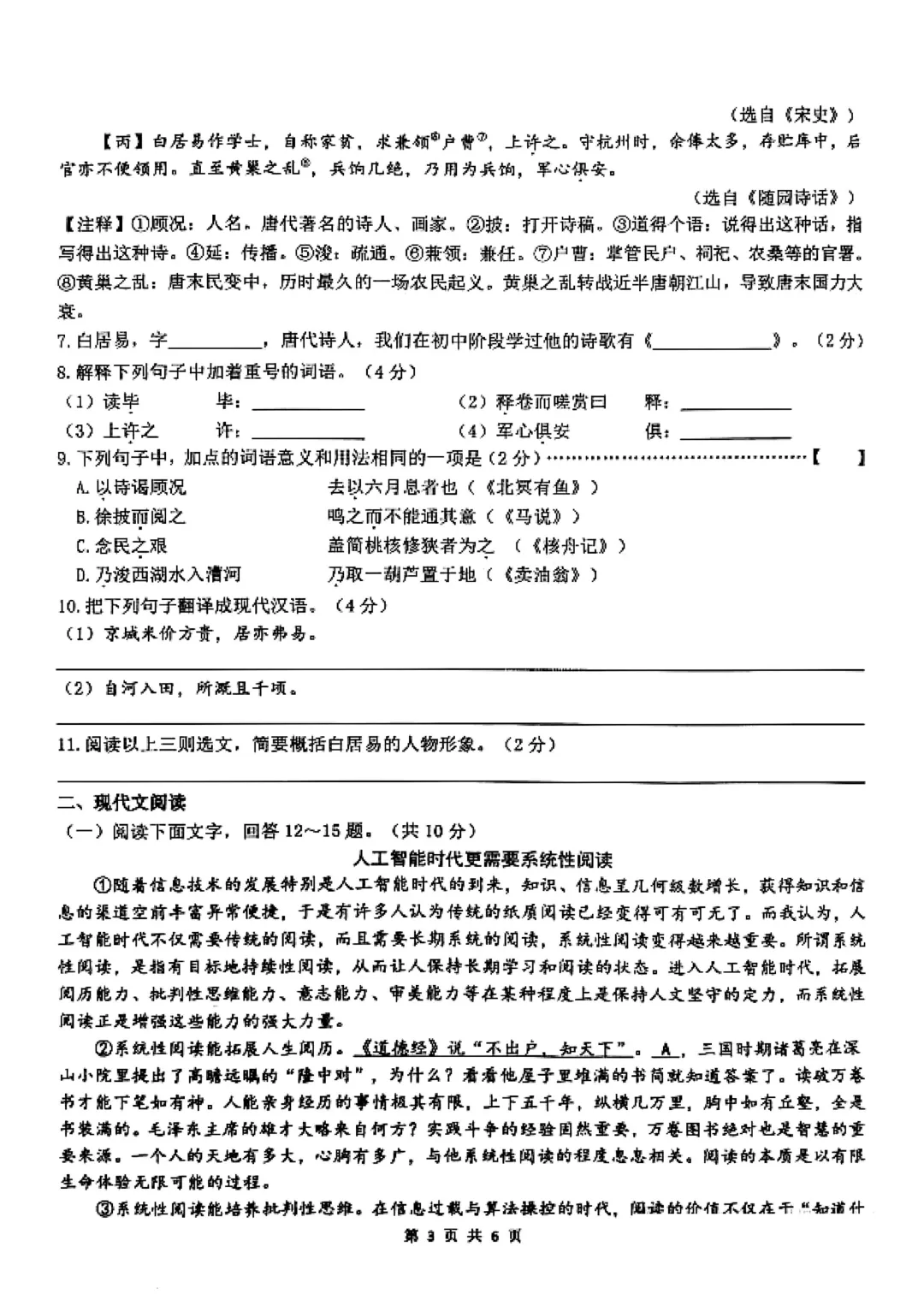 【真题再现】2025年春八年级语文期中试卷,后附答案