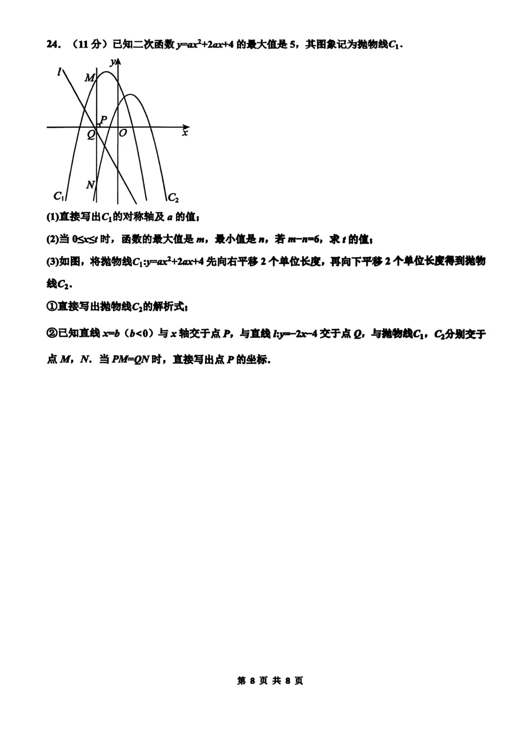 2026年4月湖丽衢二模数学试卷及答案(浙江地区最后一张二模卷)