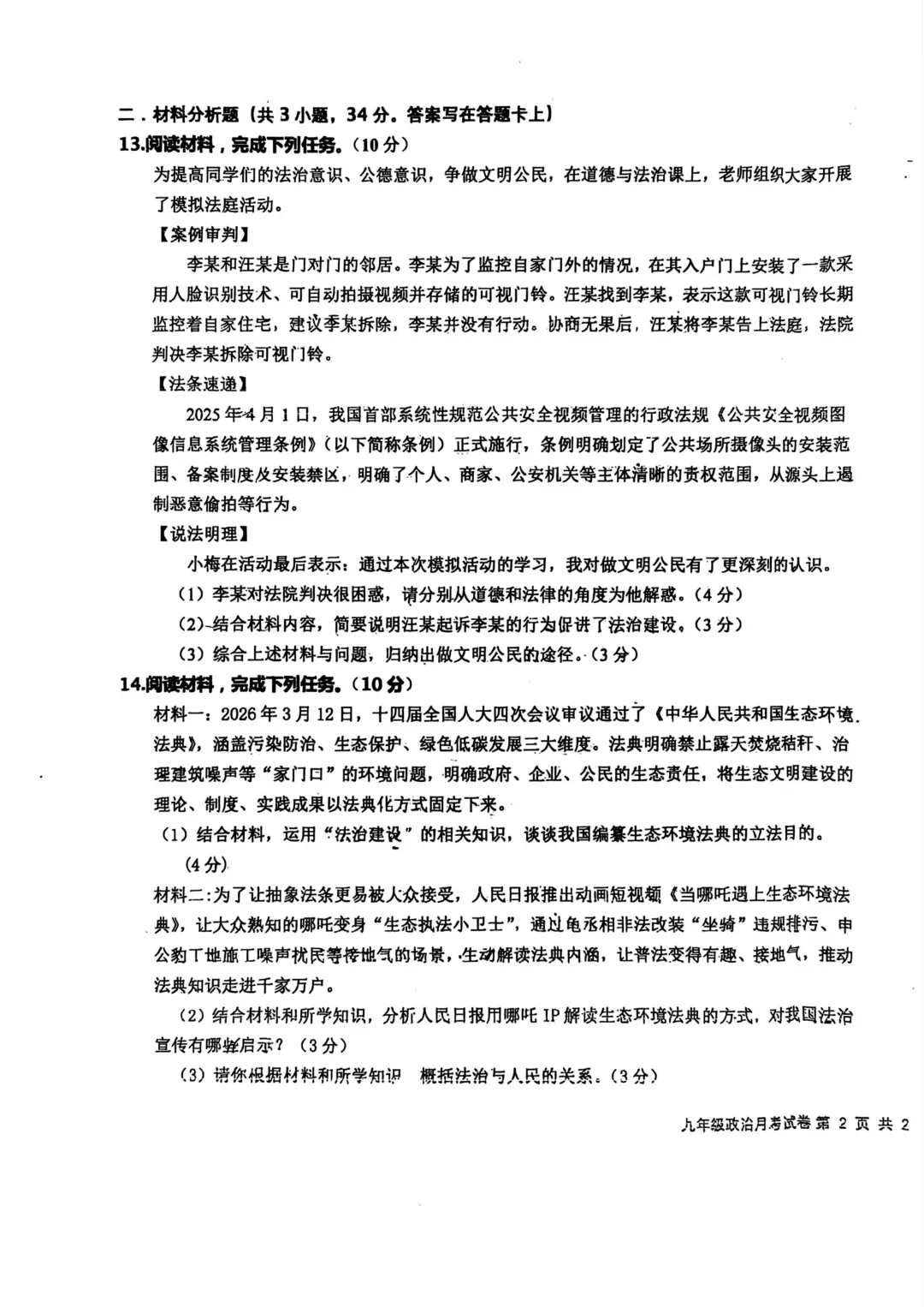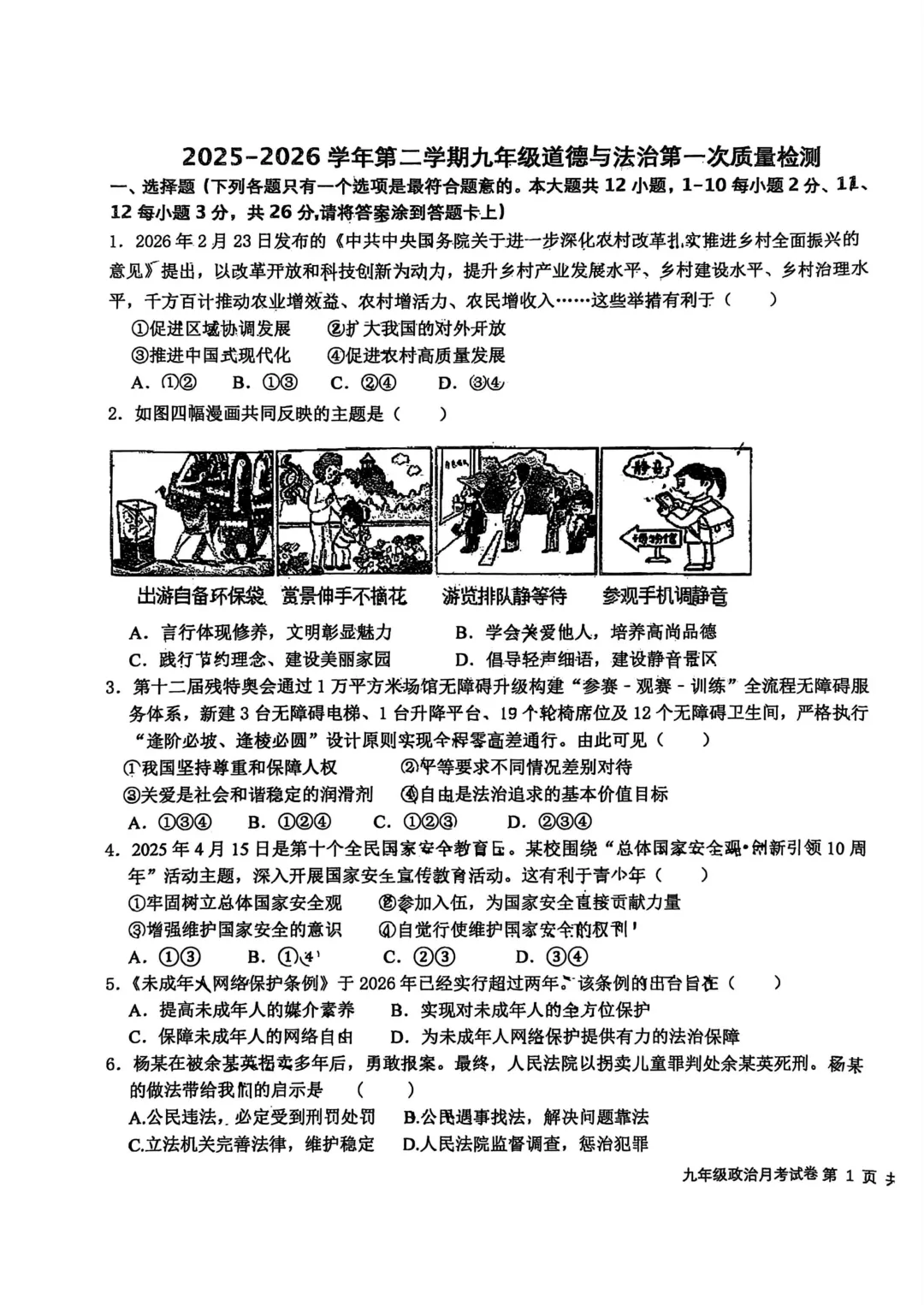 【七科全】河南新乡2026中考一模试卷--七科试卷+答案