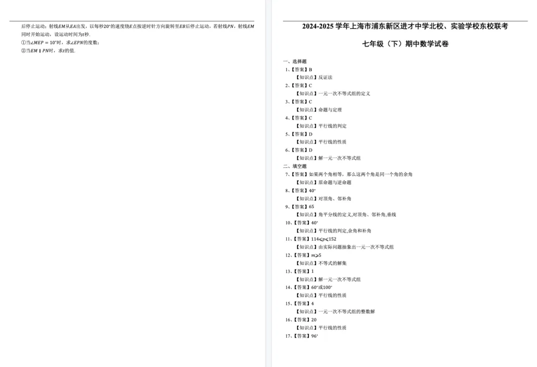因此,今天金老师给大家带来了《上海6-8年级第二学期名校期中考试卷(解析版)》
