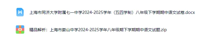 上海地区八年级下册的语文,数学和英语,物理化学的各科的最新考试期中试卷分享,也是最近几年新的考试试卷,对应的图片中的试卷名称,后续期末考试的相关试卷也会再更新 上海市娄山中学2024-2025学年八年级期下学期期中语文试题,上海市同济大学附属七一中学2024-2025学年八年级下学期期中语文试卷