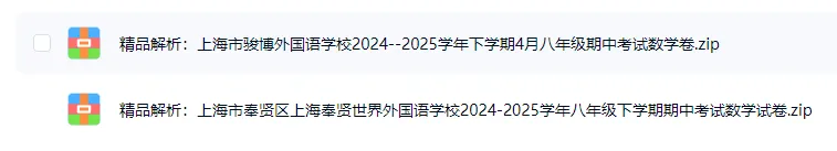 八年级下册语文: https://pan.baidu.com/s/1FZvUAwgyAm9s8oYa3b0Dcw 提取码: sn9a 上海市骏博外国语学校2024--2025学年下学期4月八年级期中考试数学卷,上海市奉贤区上海奉贤世界外国语学校2024-2025学年八年级下学期期中考试数学试卷