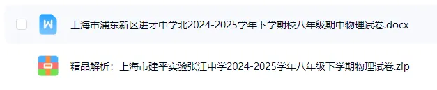 上海市浦东新区进才中学北2024-2025学年下学期校八年级期中物理试卷,上海市建平实验张江中学2024-2025学年八年级下学期物理试卷八年级下册物理: https://pan.baidu.com/s/1kk_HyBAJhpLAL7l4XzqYPg 提取码: awrp 化学