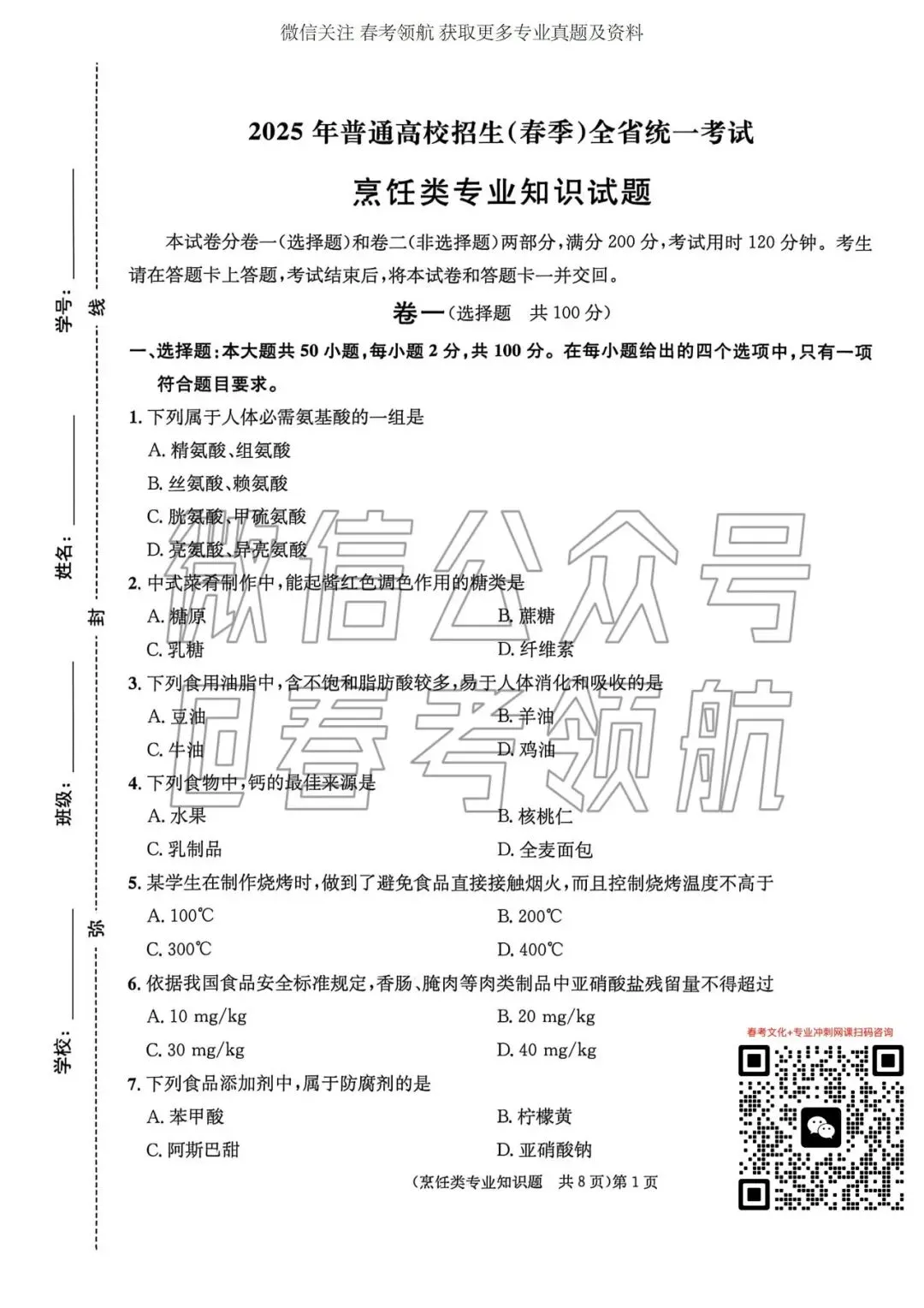 因政策限制,后续发布的春考真题隐藏少量内容,春考30个大类专业试题持续发布,持续关注春考领航公众号即可。