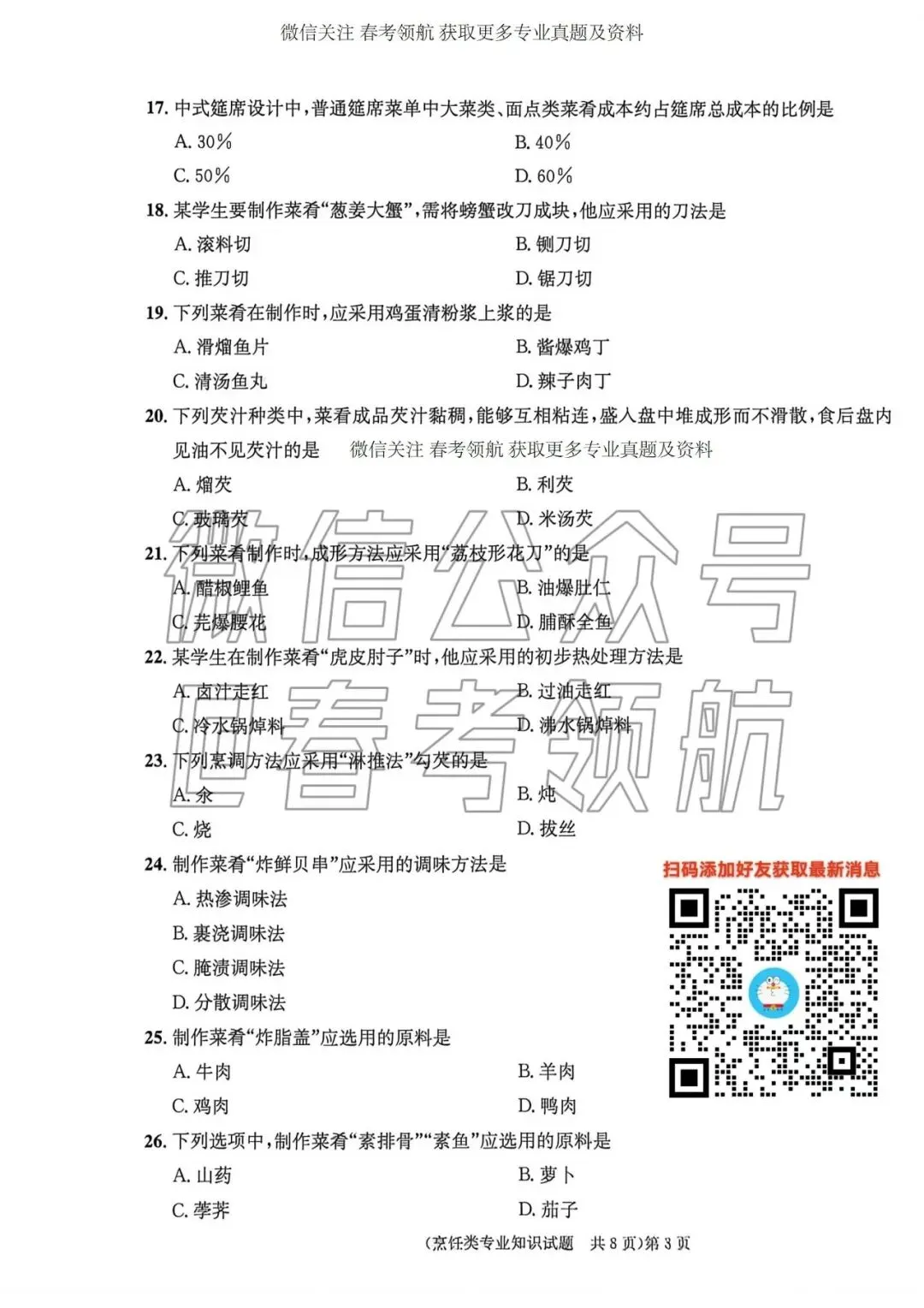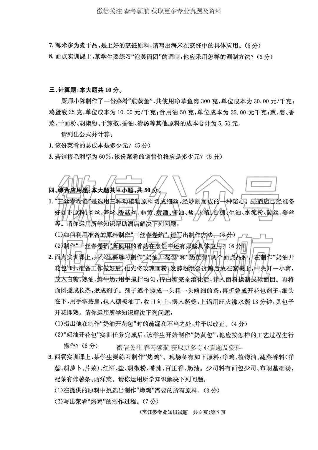 >【最新】25年春考烹饪考试真题(含答案)