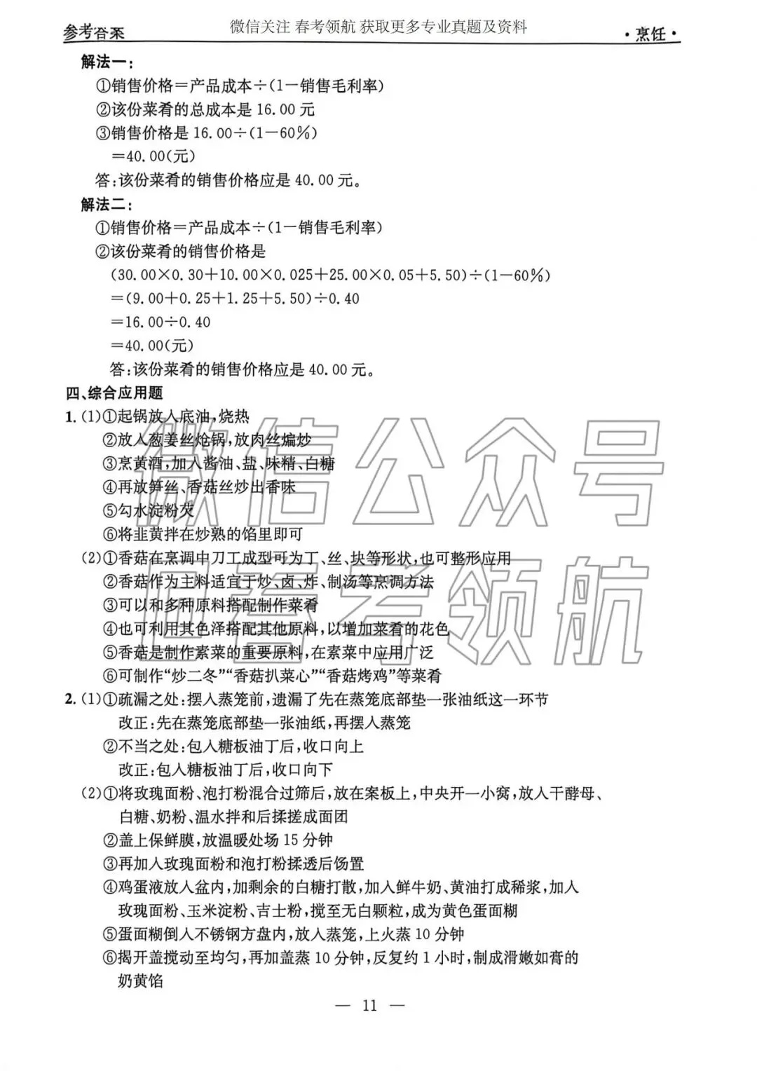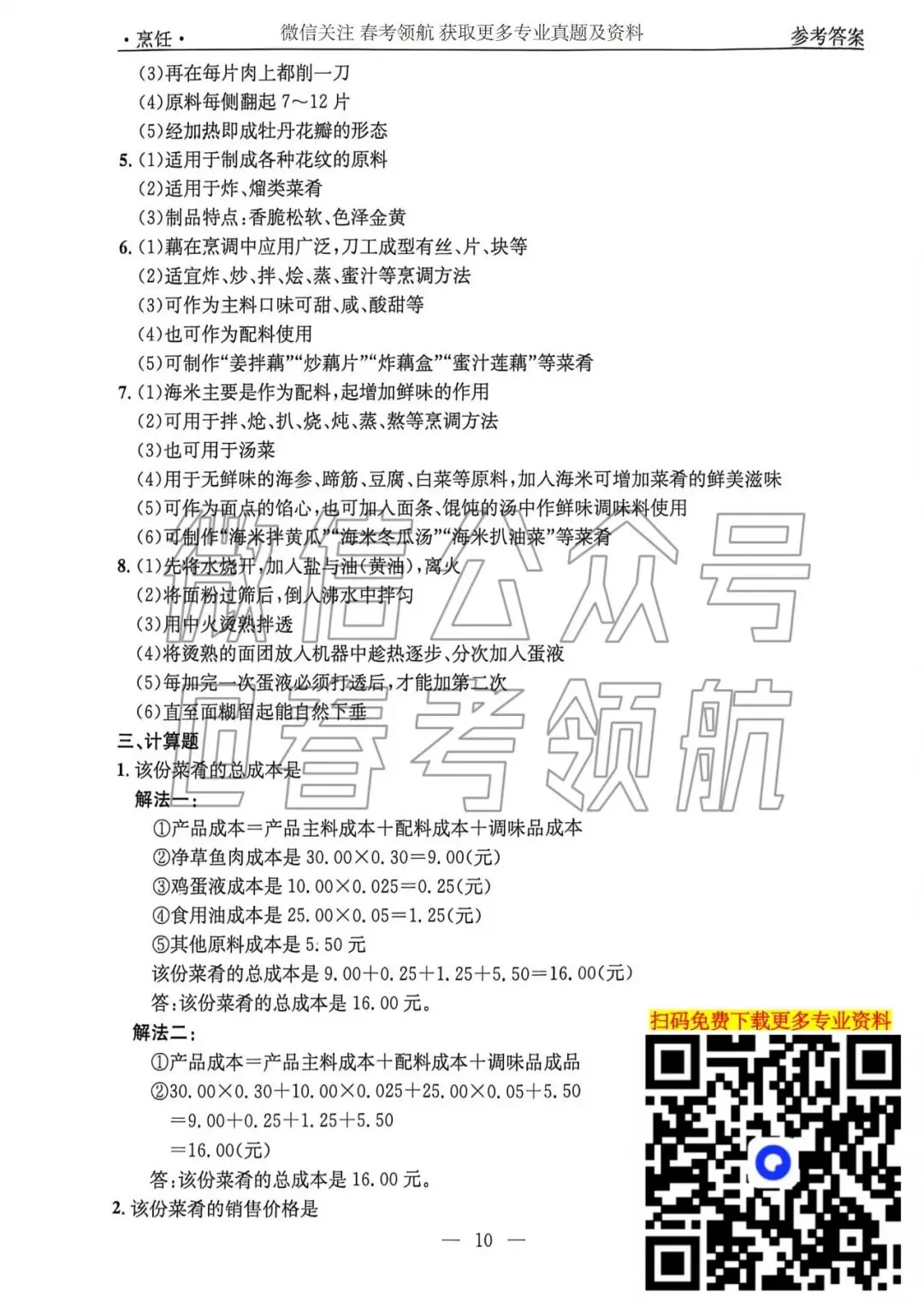 【最新】25年春考烹饪考试真题(含答案)