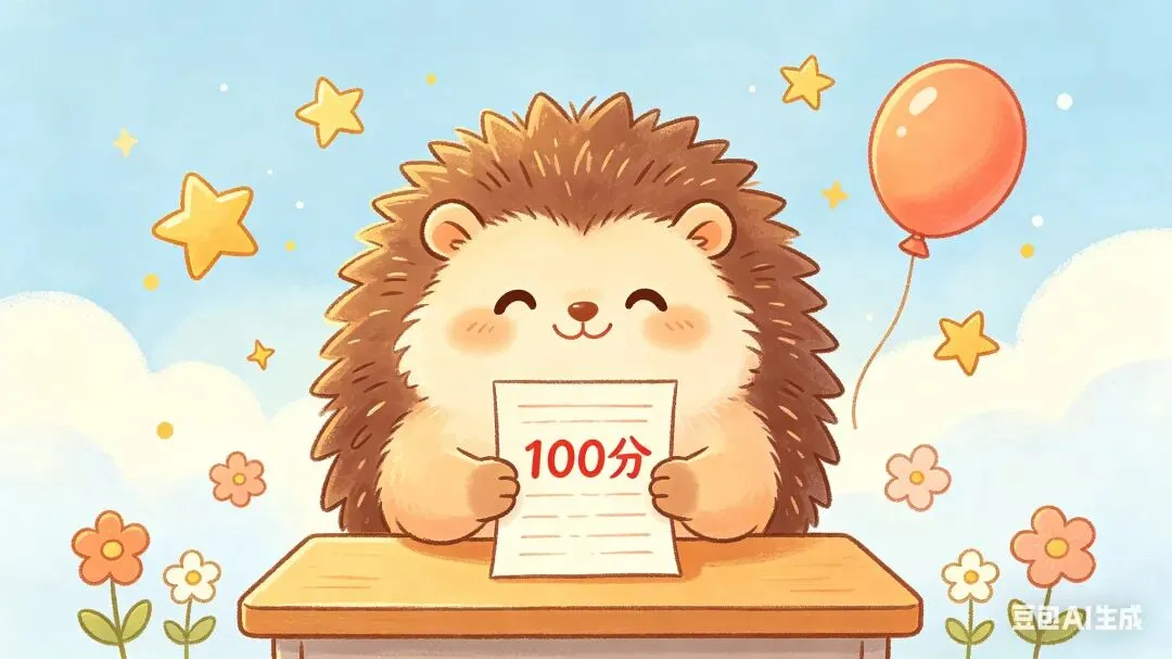 在一片很大很大的森林里,住着一只小刺猬,名字叫暖宝。他最近学习可认真了,每天都把单词背得滚瓜烂熟,数学题也做得飞快。他觉得自己这次考试一定能考100分,说不定还能超过那个总是考第一的小花猫呢。