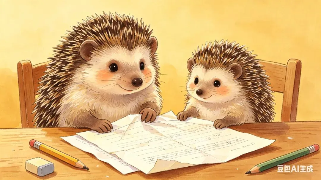 回到家,刺猬妈妈看见他鼓着腮帮子,眼睛红红的,就知道发生了什么。她没有问分数,只是轻轻地说:“暖宝,妈妈看见你把试卷揉皱了。你是不是很难过?”暖宝点点头,把脸埋进妈妈的怀里。