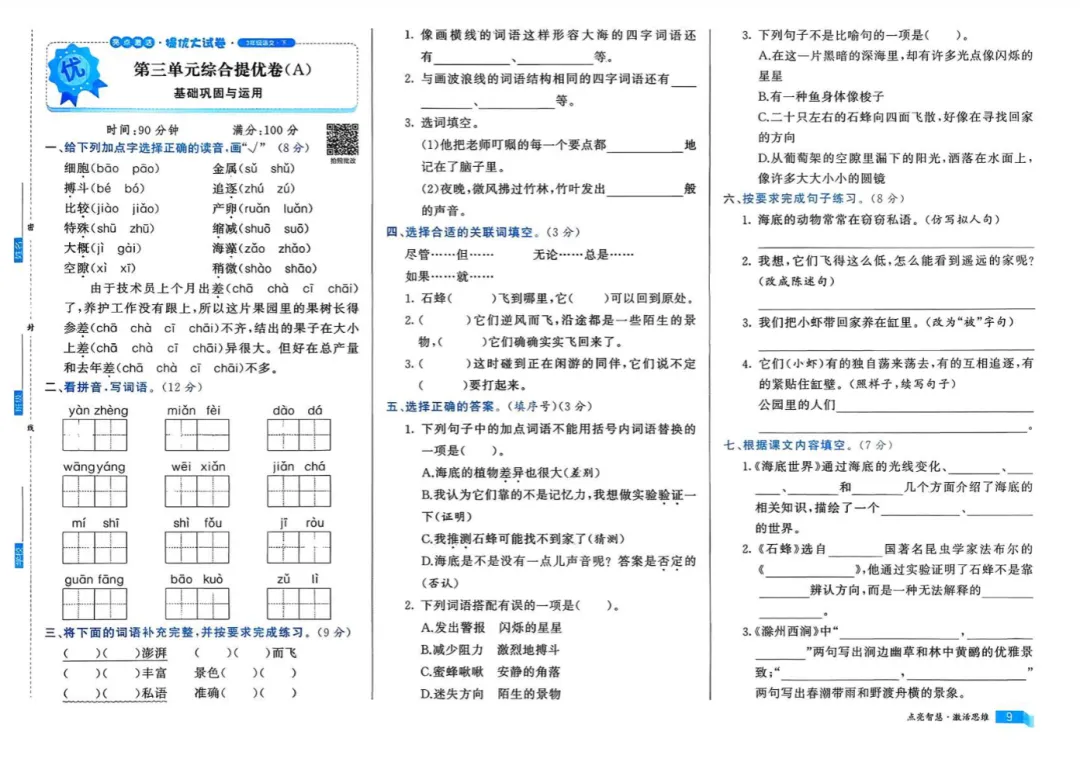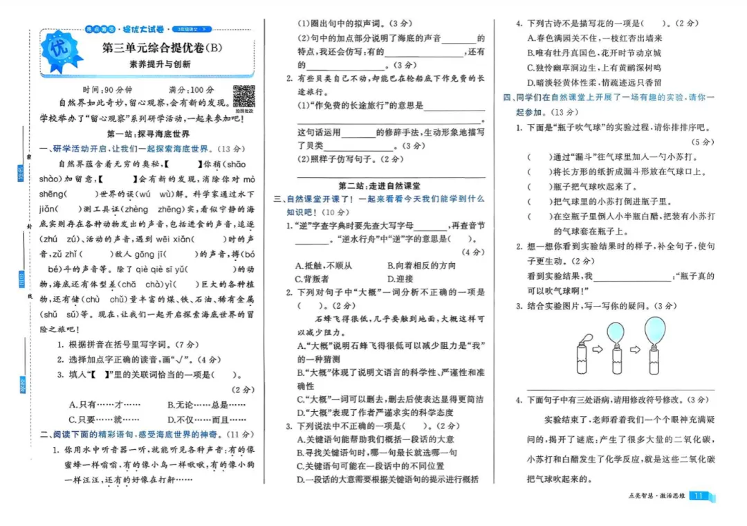 今天分享的是26春《亮点激活提优大试卷》语文人教版123456年级下册资料。PDF电子版;可下载、可打印