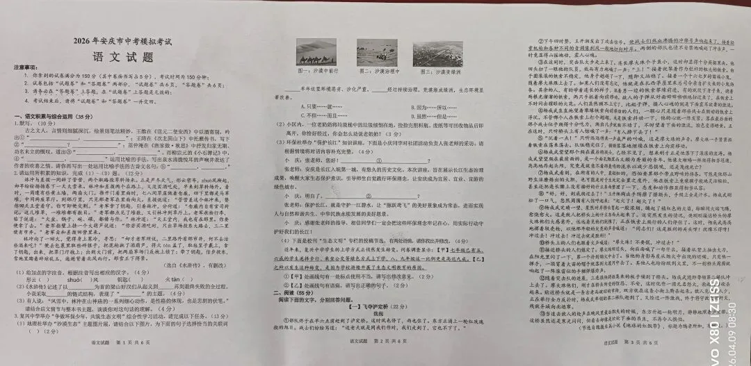 本次安庆市一模语文试卷严格贴合《义务教育语文课程标准(2022年版)》(以下简称“课标”)与安徽省中考考纲,以核心素养为导向,全面考查学生的语言运用、思维能力、审美创造与文化自信。以下从试卷定位、课标对标、考纲契合度、典型问题及后期复习建议四维度展开分析。