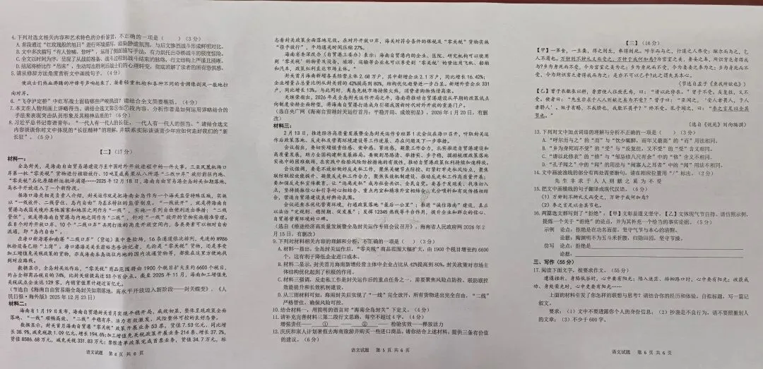 1. 文化自信:试卷深度融入中华优秀传统文化与革命文化。- 古诗文默写(10分)聚焦课标要求的必背篇目,如《送东阳马生序》《水调歌头》等,同时结合情境考查理解性默写,而非机械识记;