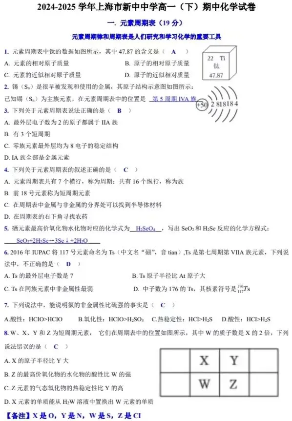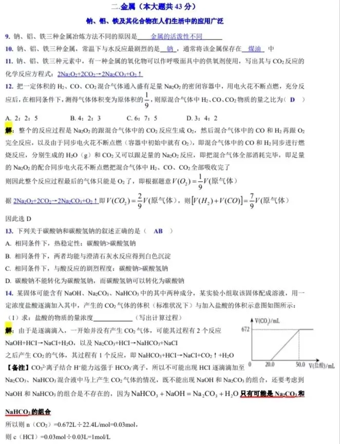 最后附一张市重点高中的期中化学全解试卷吗,以供参考学习吧!