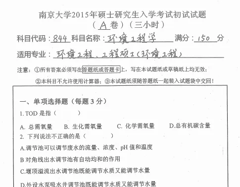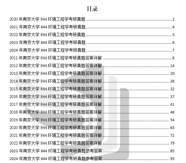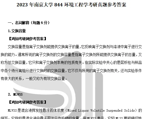 2005-2024年南京大学844环境工程学考研真题参考答案