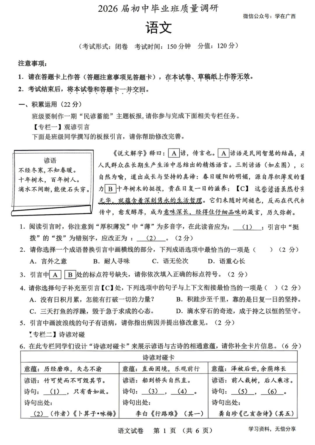 【免费分享】2026年中考一模测试试卷含答案(共七科)-电子版PDF可打印