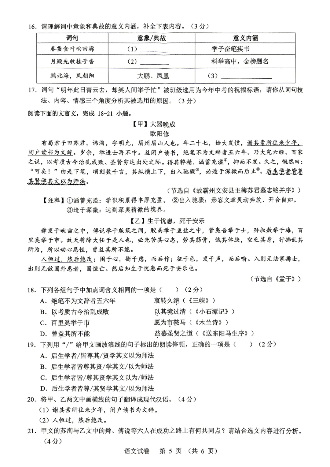2026年上海市黄浦区高三二模语文试卷(含答案)