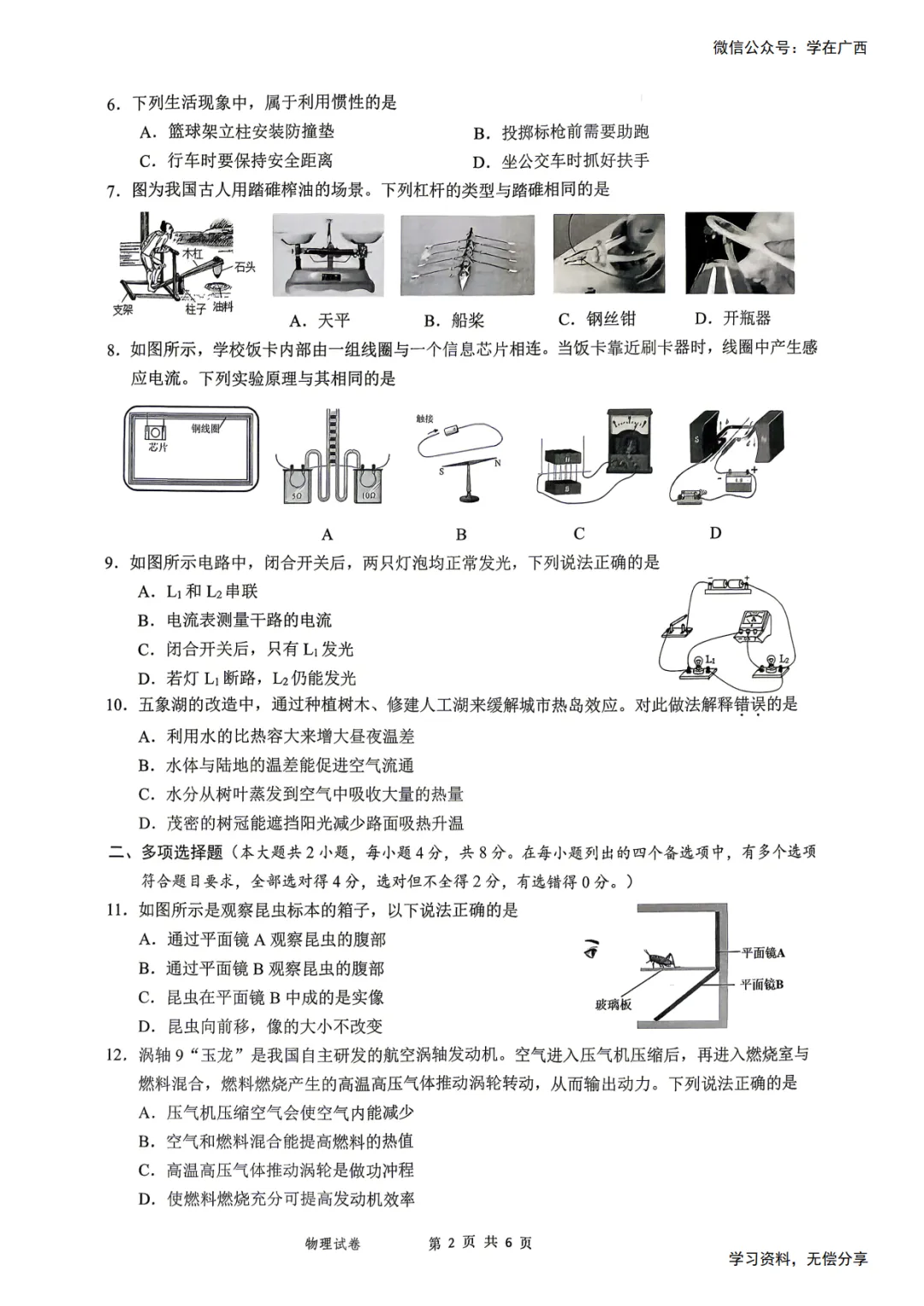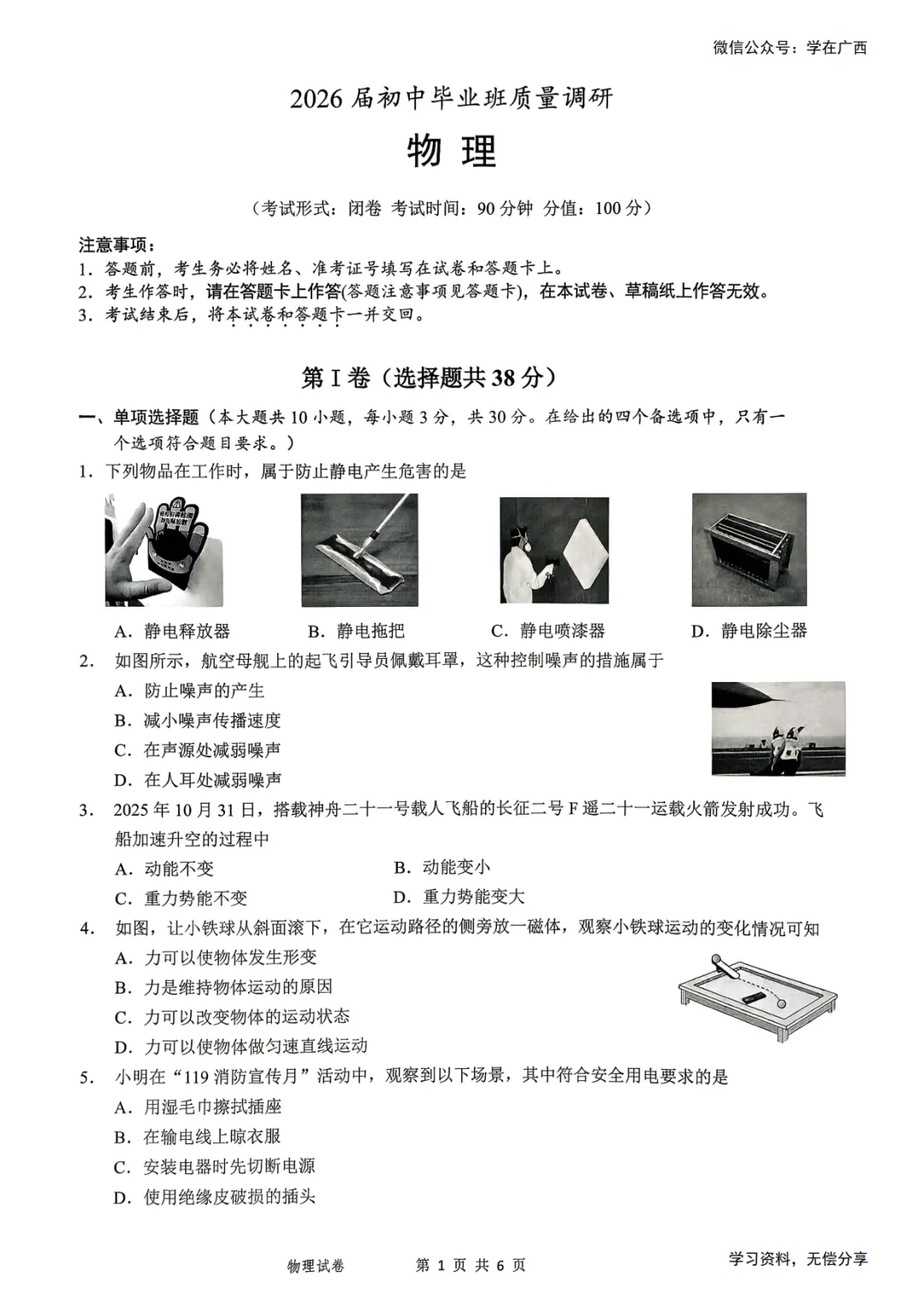 >南宁2026年4月初三一模物理试卷