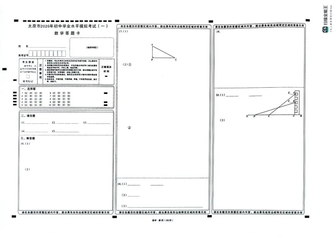 就在最近2026太原市初三一模正在如火如荼的进行着。本次就为大家准备了太原市2026初三一模数学试卷,以及配套的答题卡。供大家下载学习。