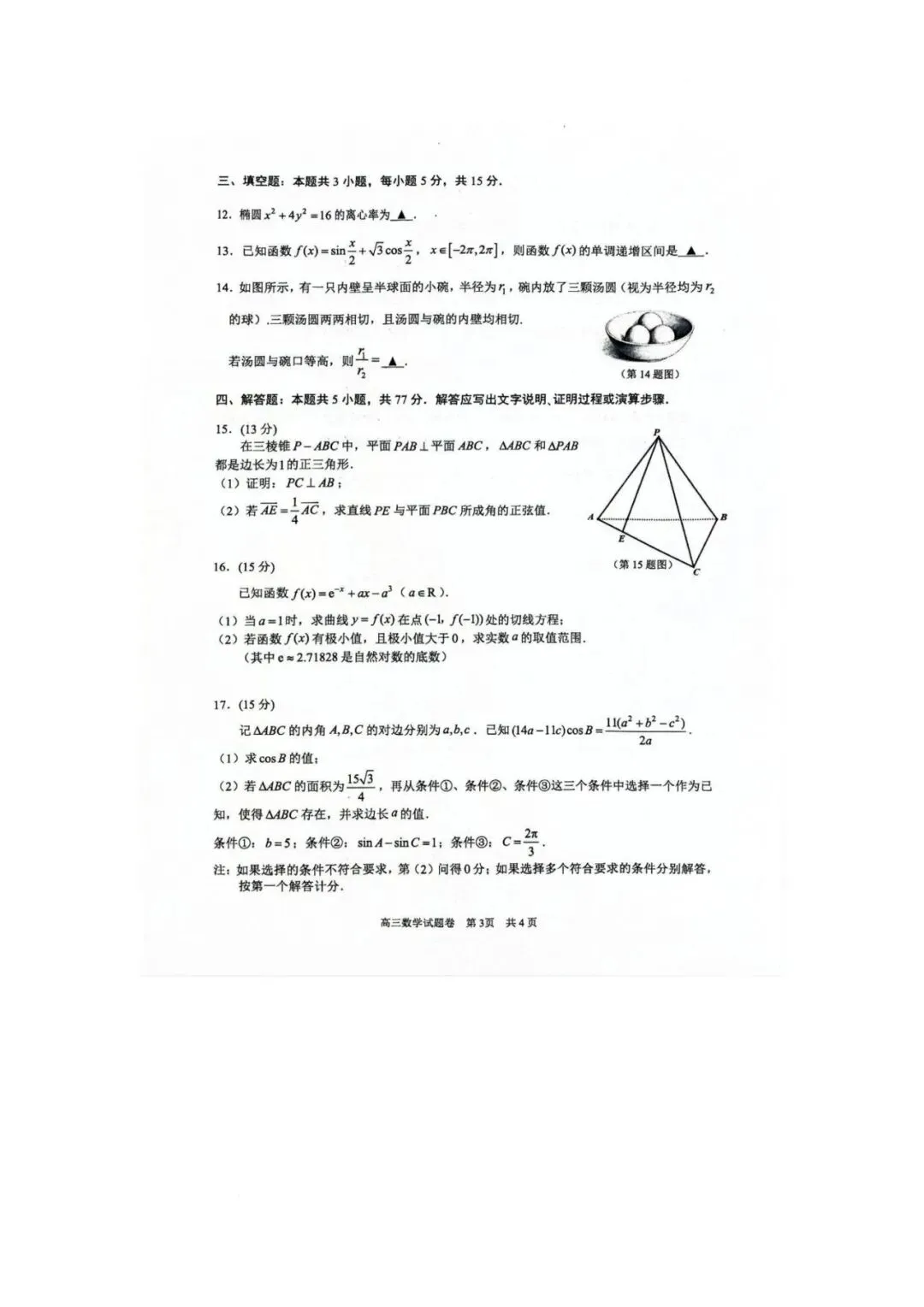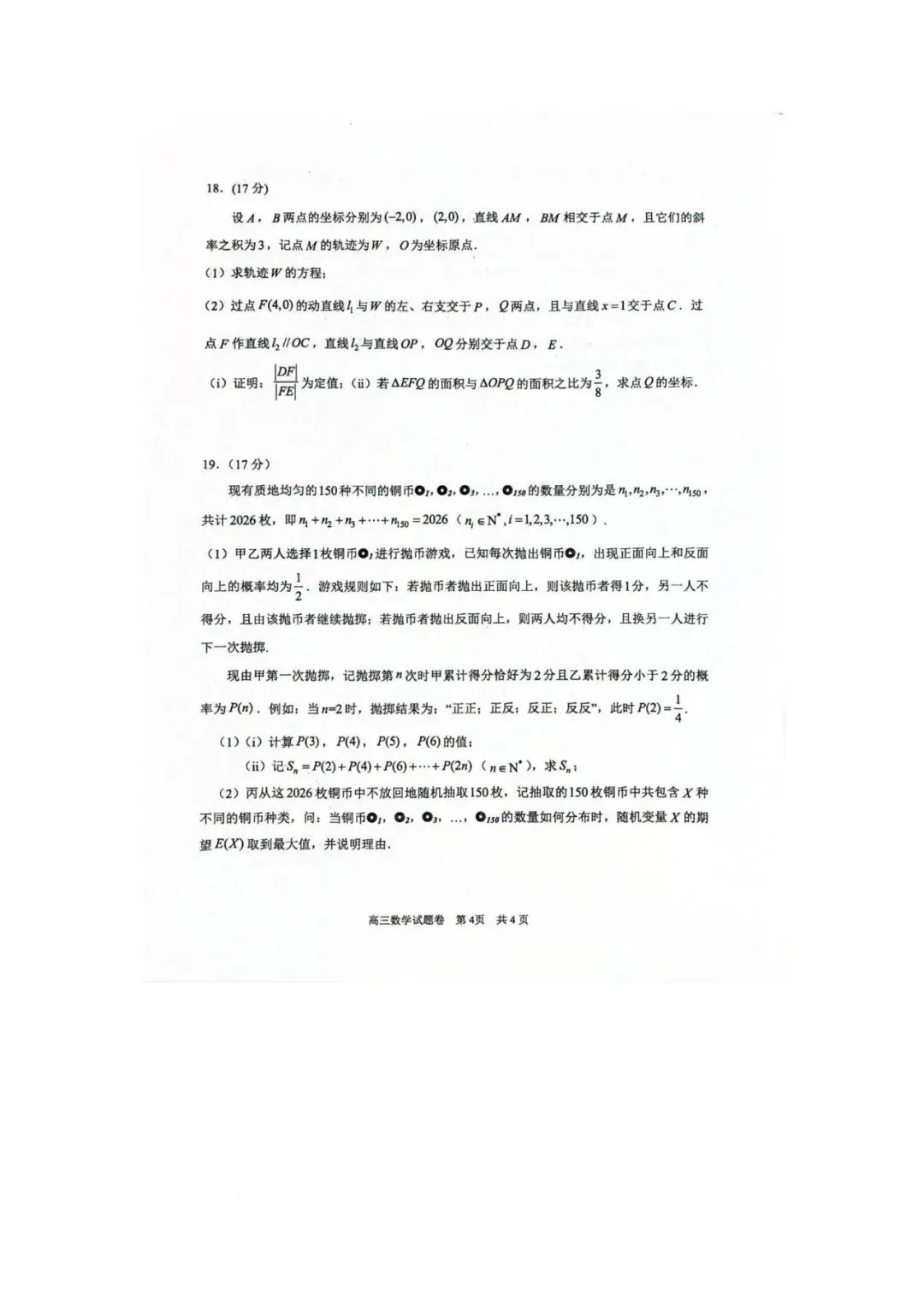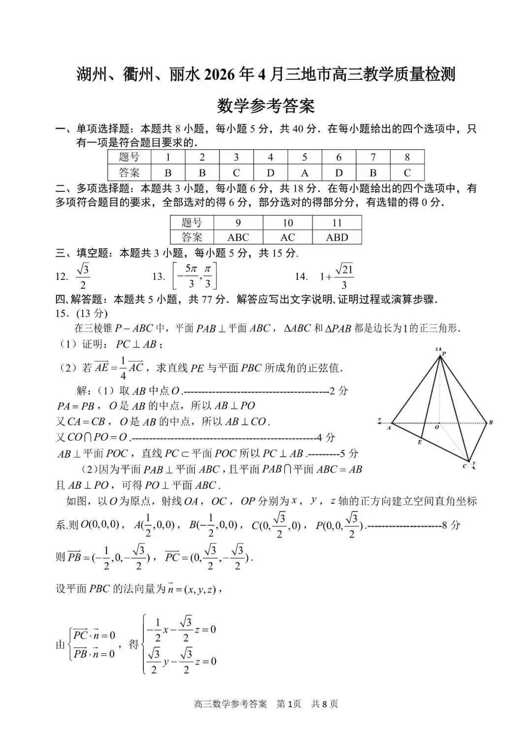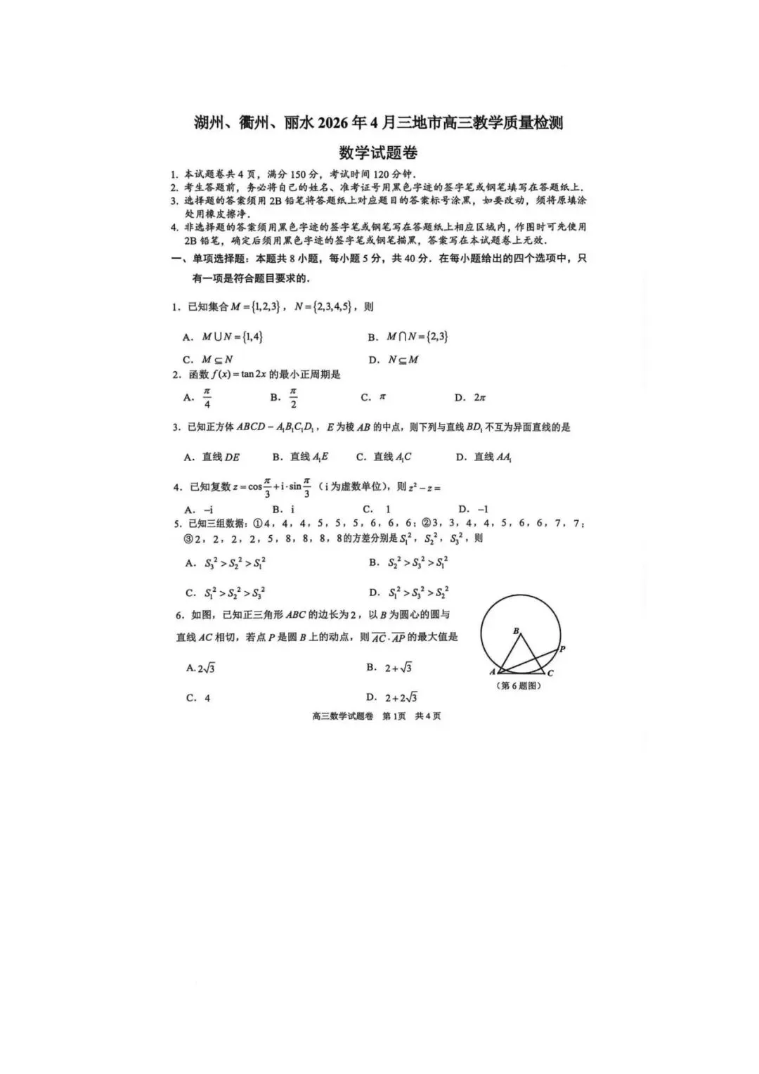 >2026年4月高三湖丽衢三地市二模数学试卷及答案
