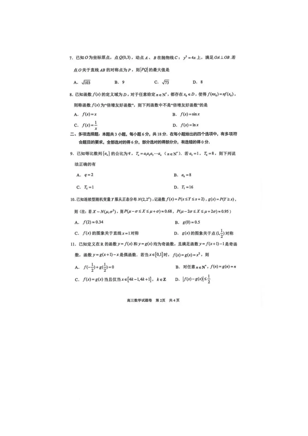 2026.4年浙江省舟山市统测一模试卷(附答案)
