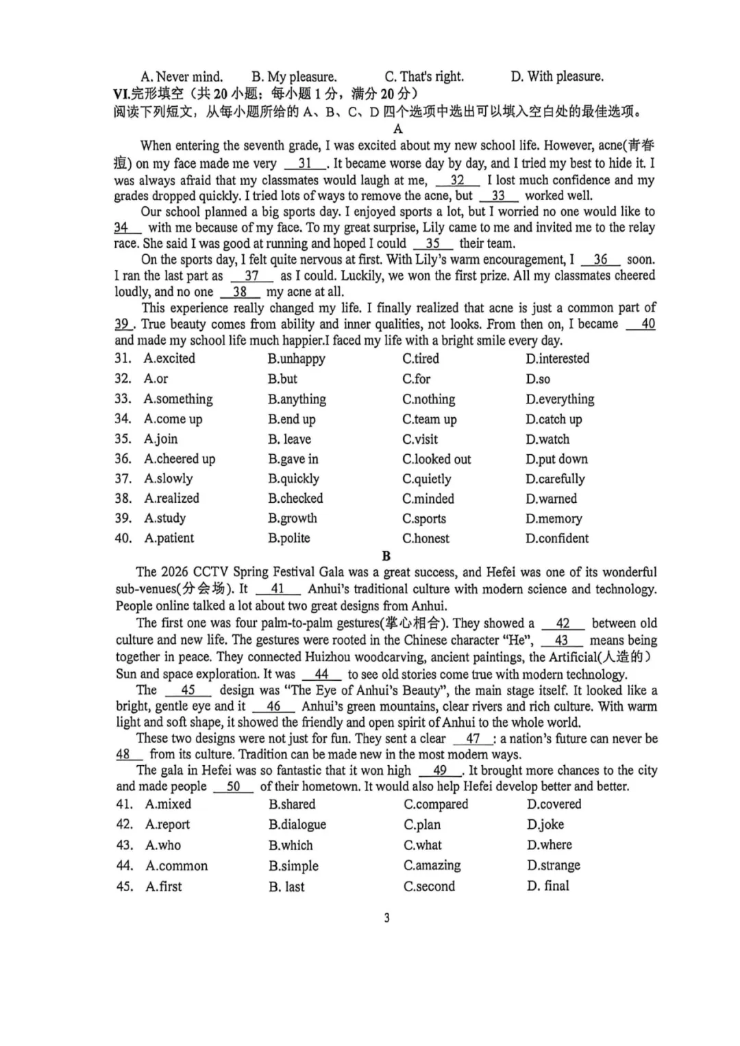 三、2026年蜀山区一模试卷及参考答案下载链接: