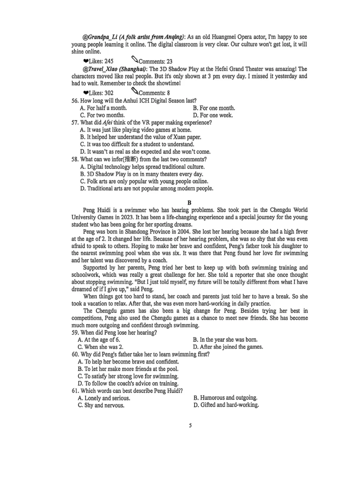 一、2026年C20二模试卷及参考答案下载链接: