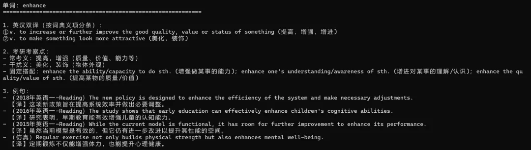 单纯让大模型直接解释单词,它可能会编例句,而且不一定贴合考研风格。所以我用了RAG(检索增强生成)的思路: