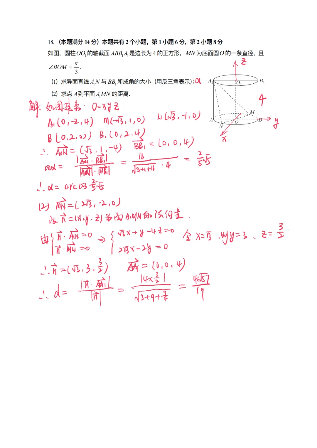 试卷分享0028:2026届上海松江区高三二模 数学试卷(答案+难题详解)