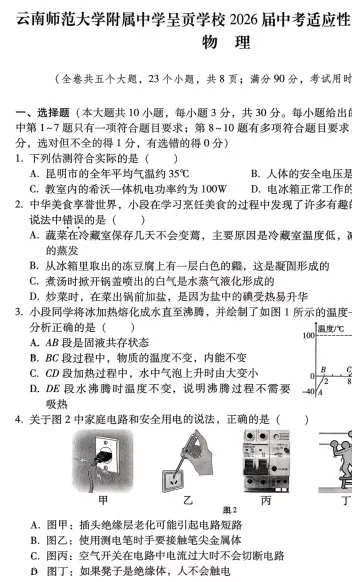 物理 2025-2026中考适应试卷