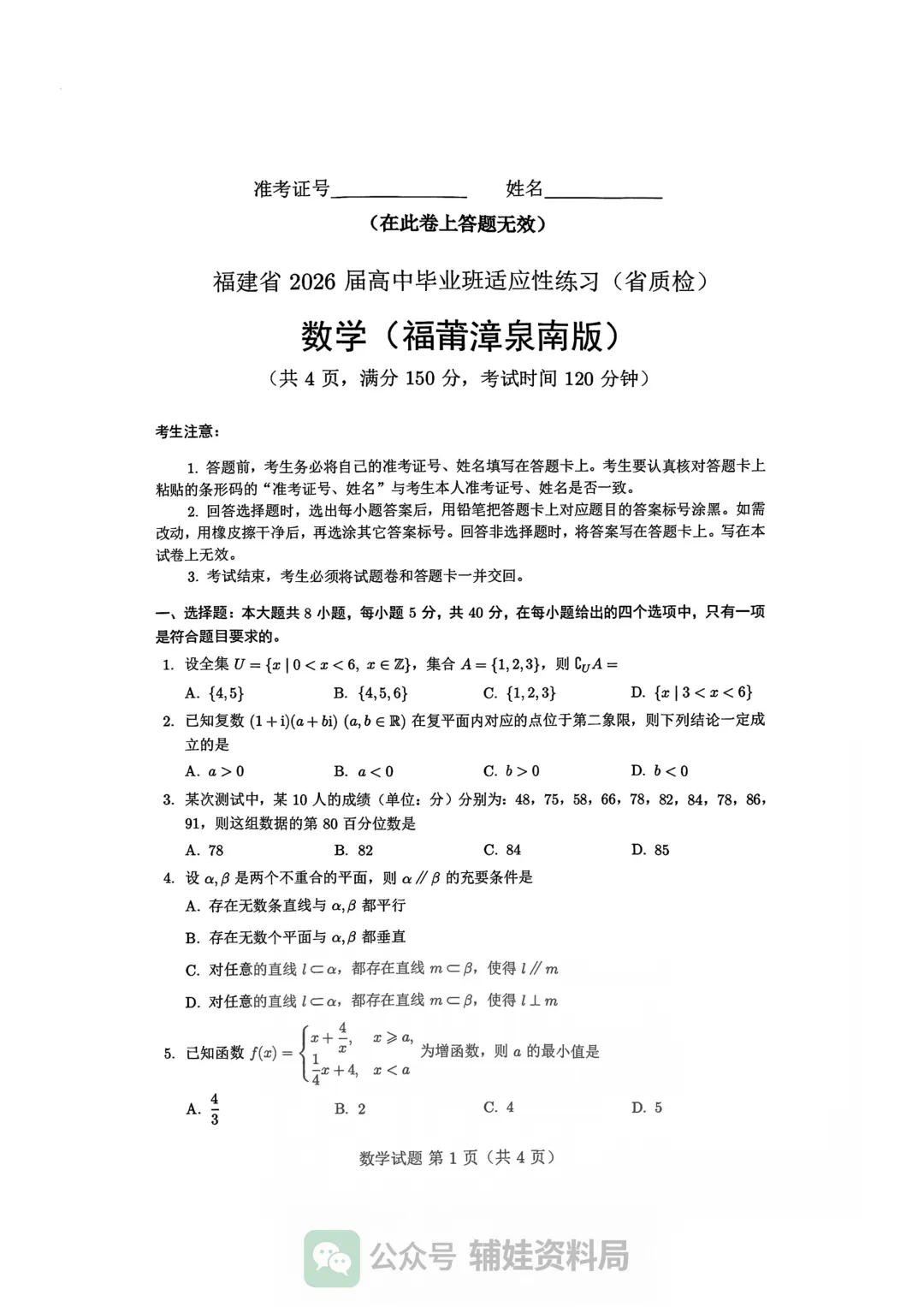 【高三质检试卷】福建省2026届高中毕业班4月适应性练习质量检测真题卷查缺补漏复习用