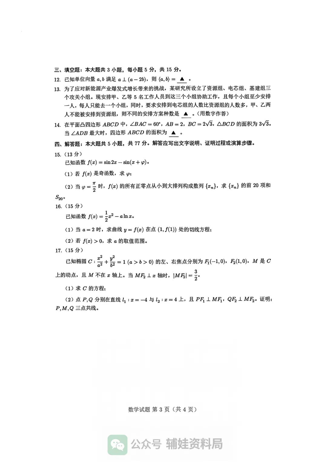 试卷分享0030:2026届上海闵行区高三二模 数学试卷(答案+难题详解)