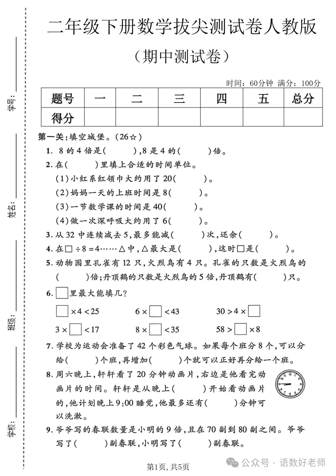 「二年级(下)数学 第一单元拔尖测试卷《人教版》.pdf」