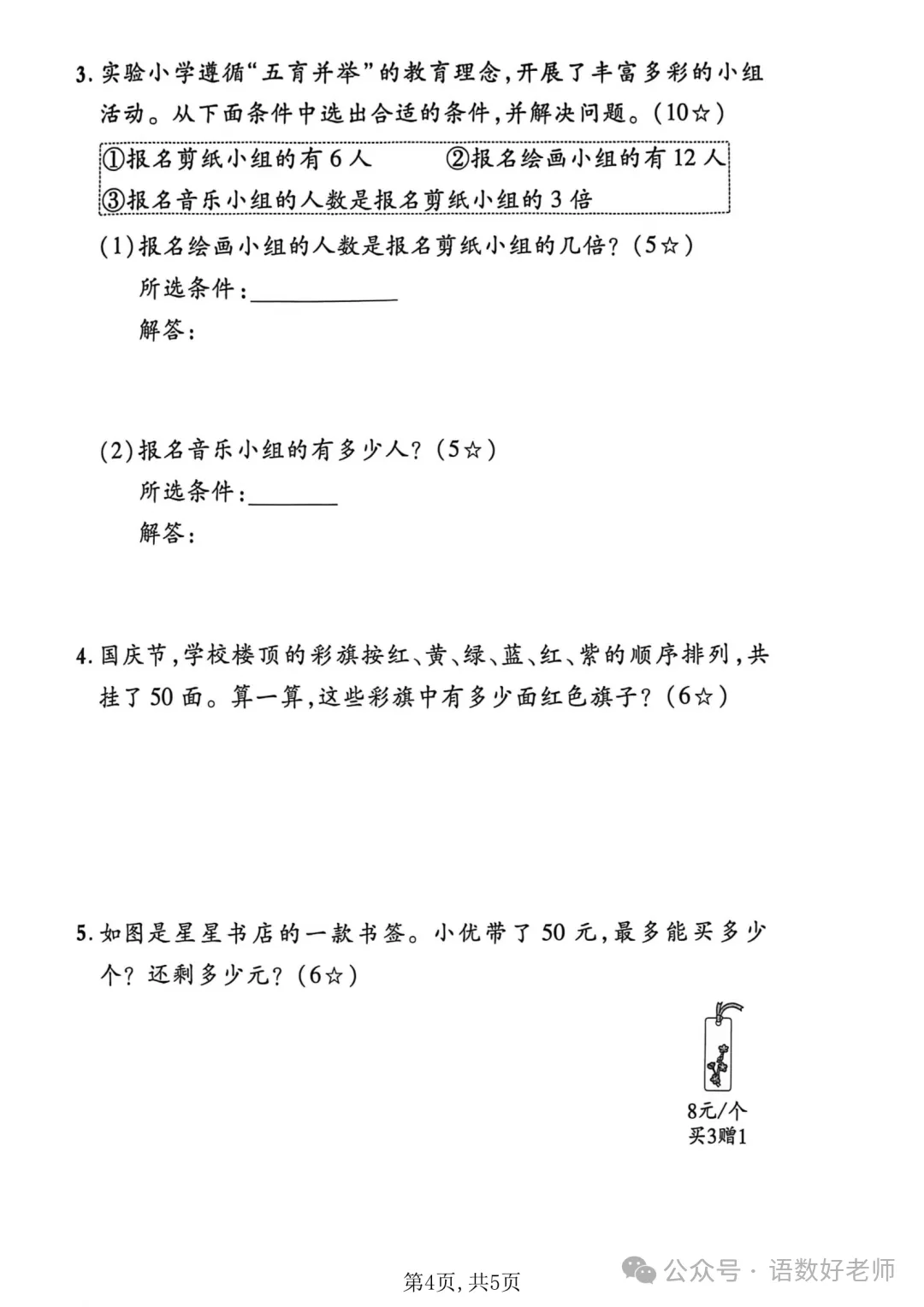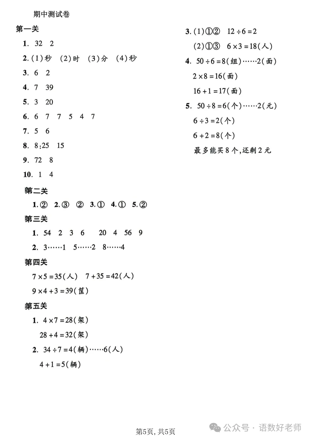 「三年级数学下册北师版26春《实验班提优大考卷》答案.pdf」