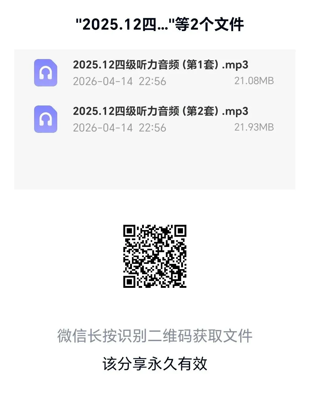 我用夸克网盘给你分享了「2025.12四级听力音频(第2套).mp3」,点击链接或复制整段内容,打开「夸克APP」即可获取。