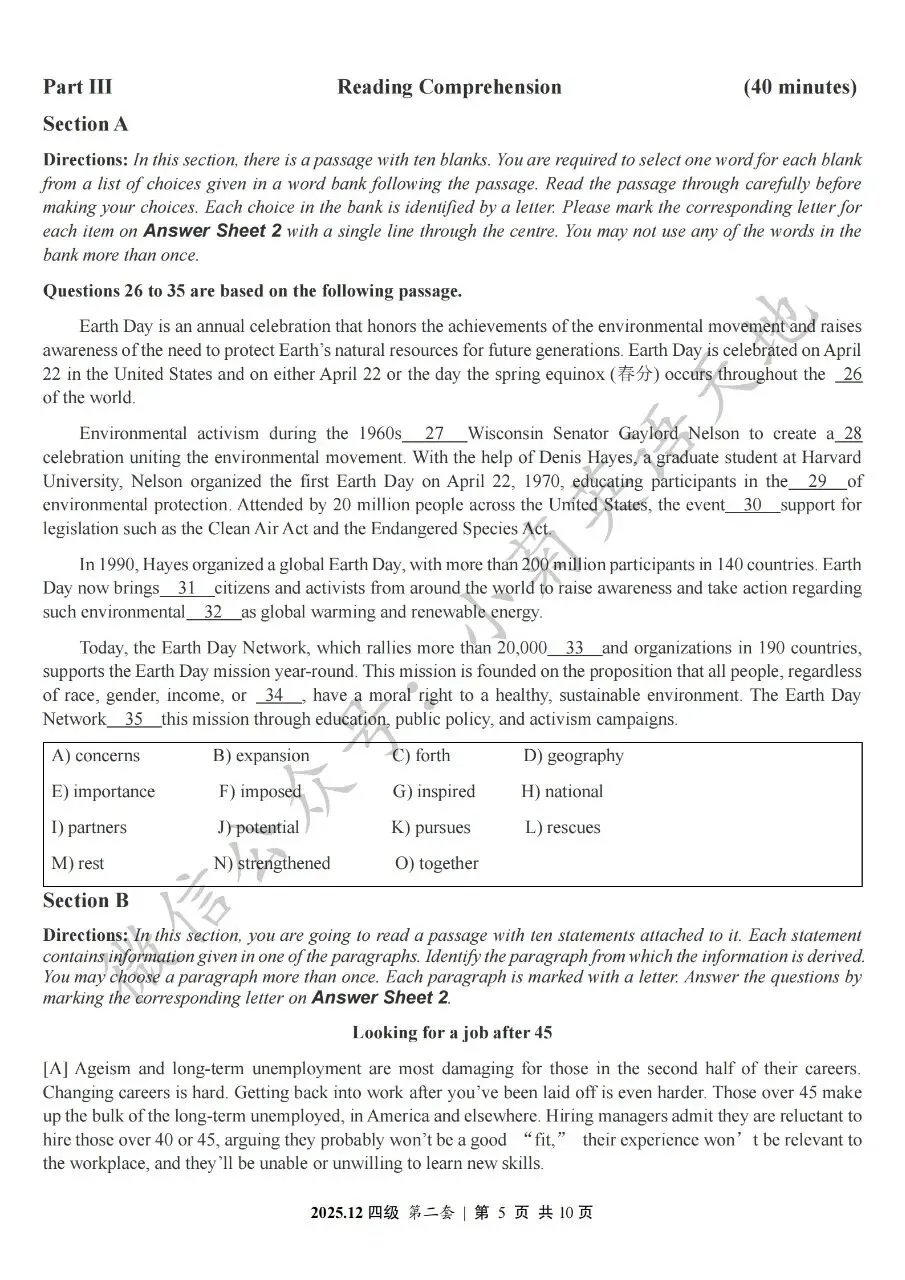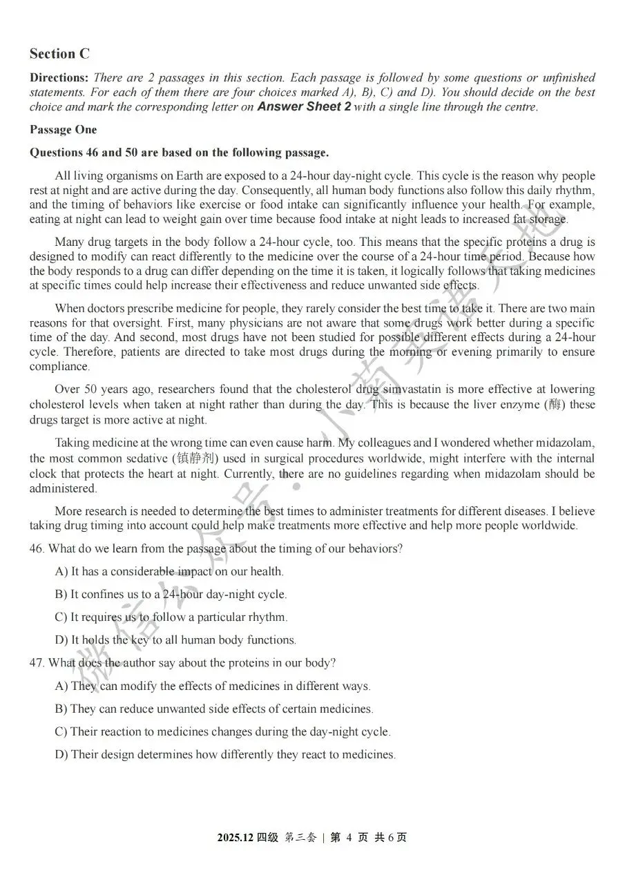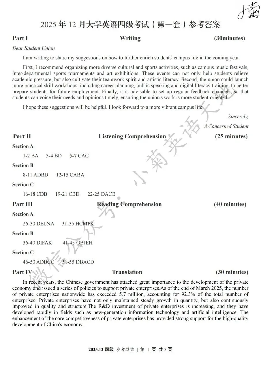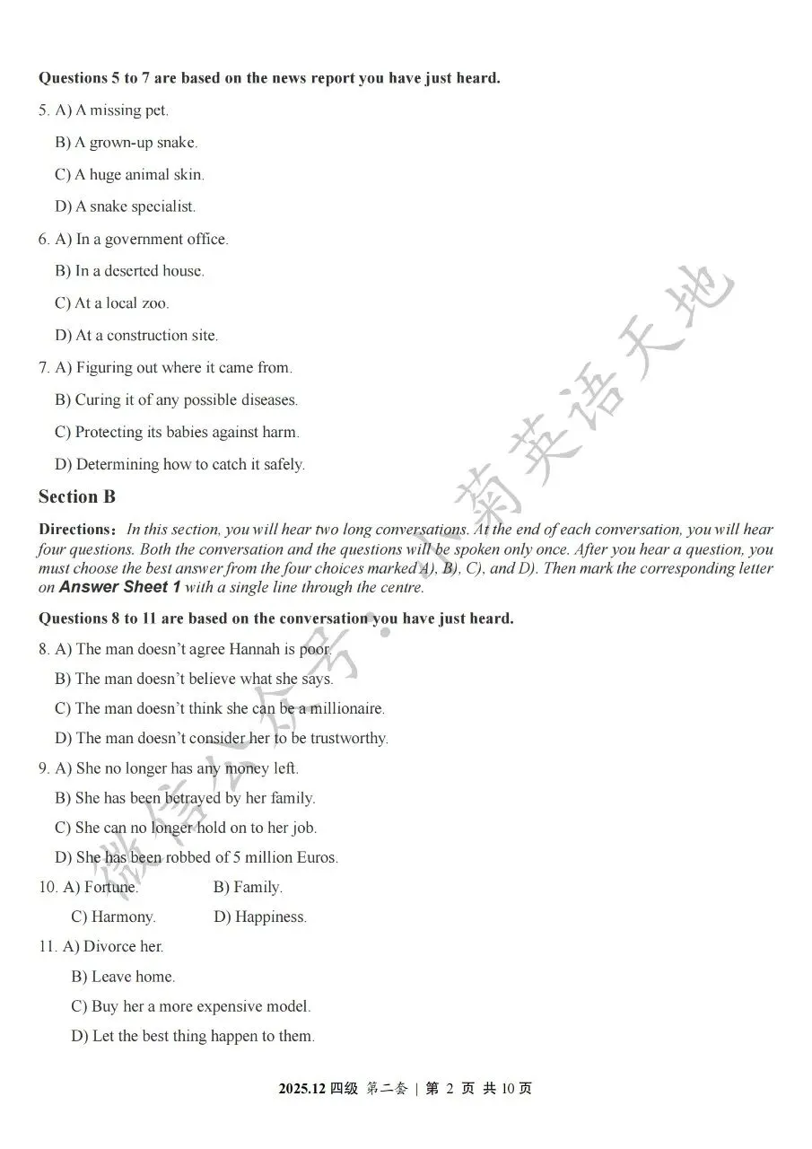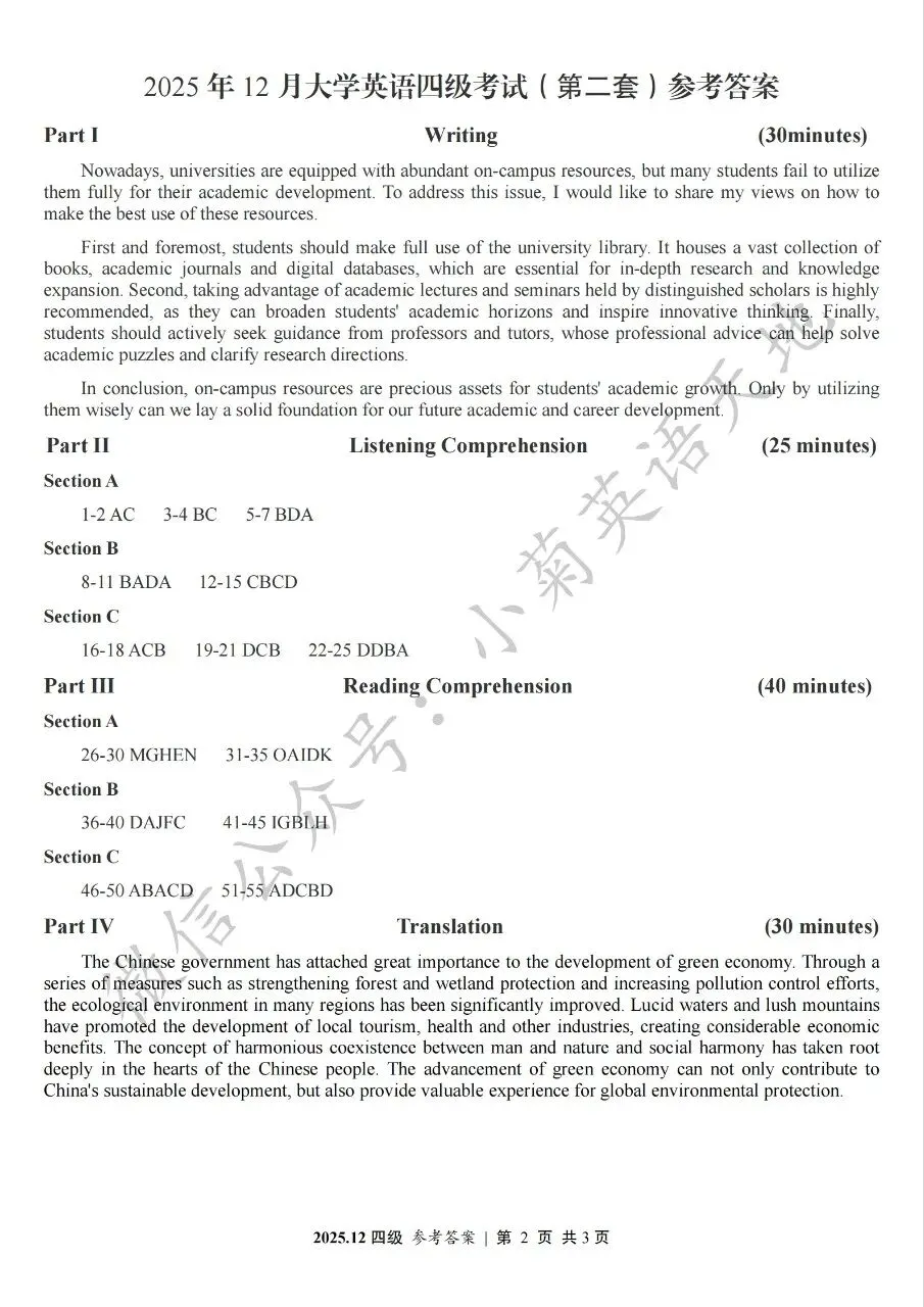2026年6月大学英语四、六级考试在即,具体时间如下:为帮助广大考生演练四六级考试真题、提高做题质量与效率,近期我们将为大家陆续分享2025年6月、12月的大学英语四六级考试真题,同时包括答案与听力音频。本篇推文先为大家分享2025年12月大学英语四级考试真题(三套全)。需要注意的是,2025年12月全国大学英语四级考试只考两套听力,故第三套试题不含听力部分。可直接扫码或复制链接打开相应APP后转存后下载保存试题PDF文件以及听力音频MP3文件我用夸克网盘给你分享了「分享版N-202...第一套).pdf」,点击链接或复制整段内容,打开「夸克APP」即可获取。 /~0cb33Y8vWv~:/ 链接:https://pan.quark.cn/s/f7e6d85e9646我用夸克网盘给你分享了「分享版N-2025年12月大学英语四级考试(第二套).pdf」,点击链接或复制整段内容,打开「夸克APP」即可获取。