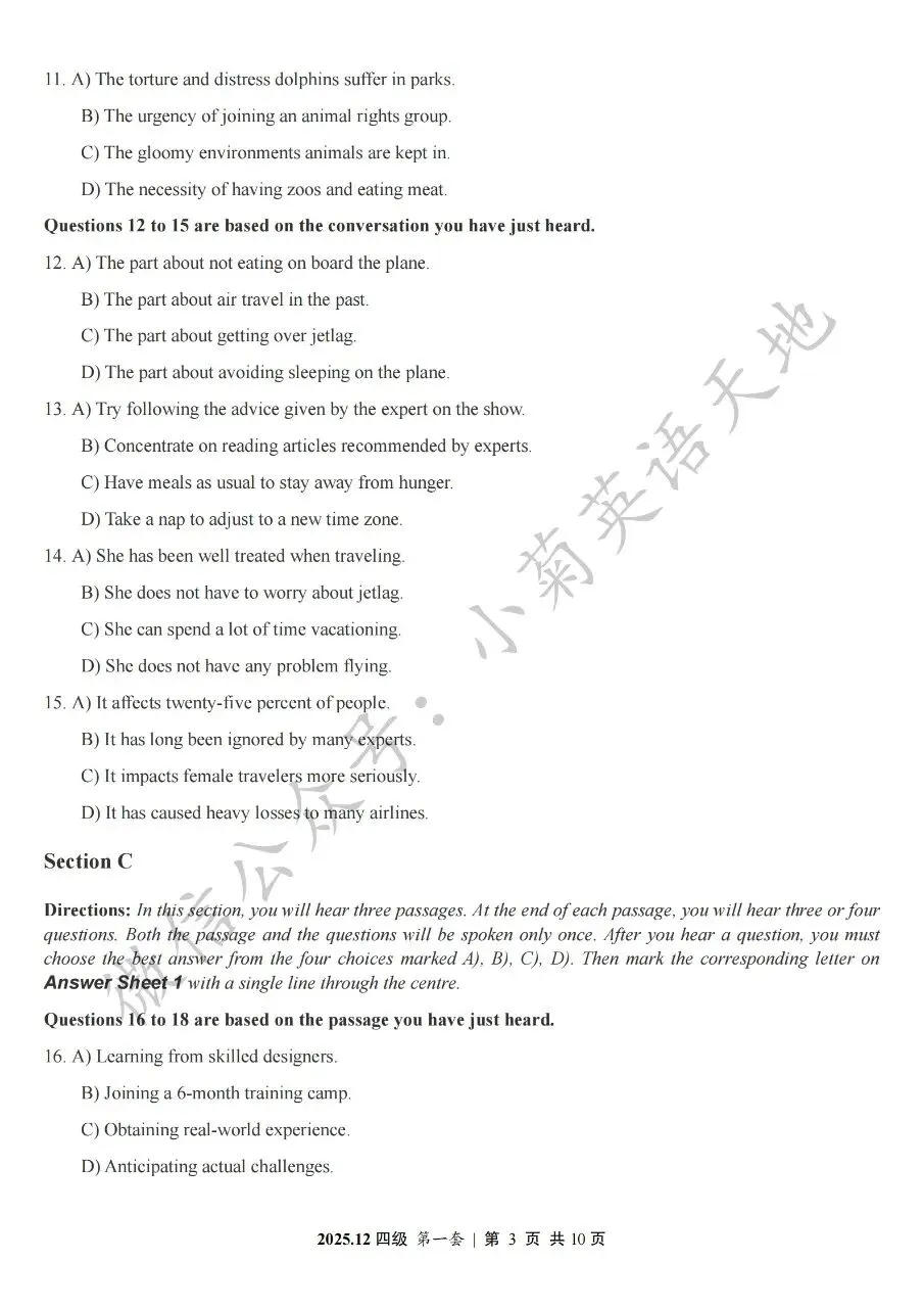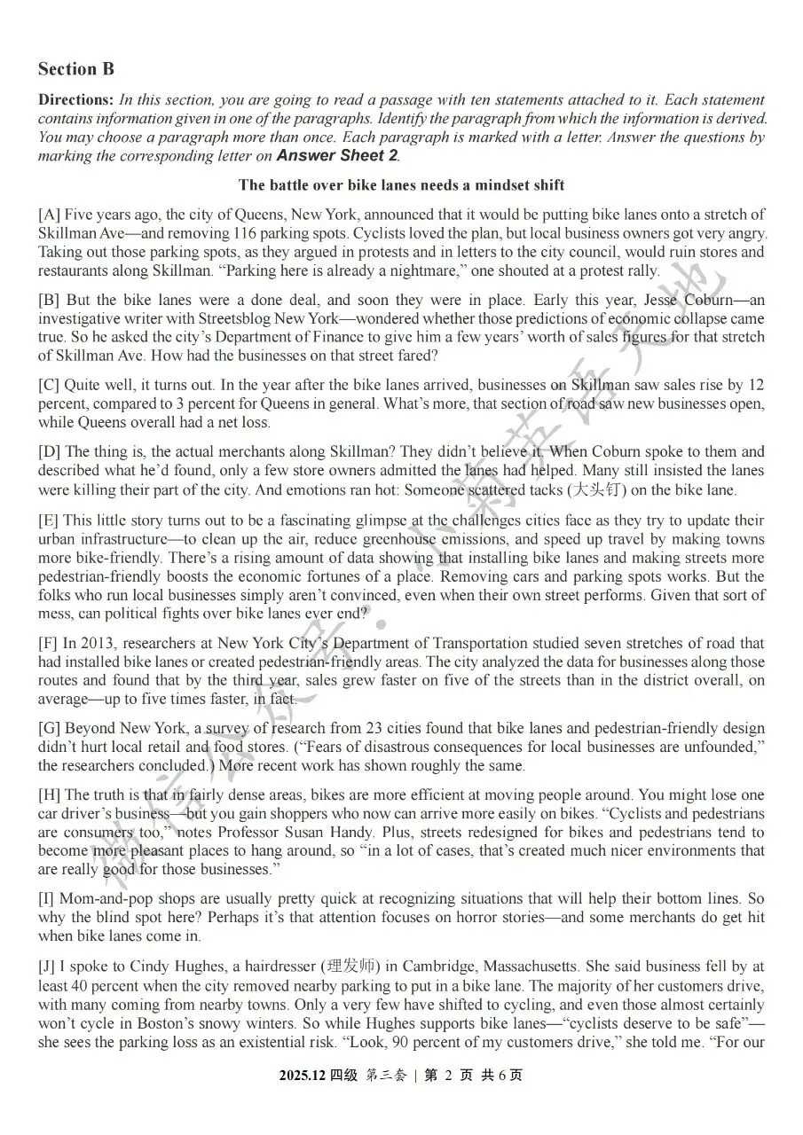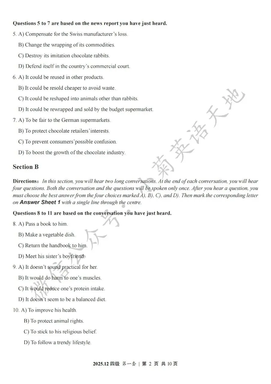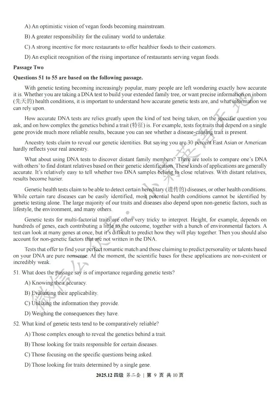 2026年6月大学英语四、六级考试在即,具体时间如下:为帮助广大考生演练四六级考试真题、提高做题质量与效率,近期我们将为大家陆续分享2025年6月、12月的大学英语四六级考试真题,同时包括答案与听力音频。本篇推文先为大家分享2025年12月大学英语四级考试真题(三套全)。需要注意的是,2025年12月全国大学英语四级考试只考两套听力,故第三套试题不含听力部分。可直接扫码或复制链接打开相应APP后转存后下载保存试题PDF文件以及听力音频MP3文件我用夸克网盘给你分享了「分享版N-202...第一套).pdf」,点击链接或复制整段内容,打开「夸克APP」即可获取。 /~0cb33Y8vWv~:/ 链接:https://pan.quark.cn/s/f7e6d85e9646我用夸克网盘给你分享了「分享版N-2025年12月大学英语四级考试(第二套).pdf」,点击链接或复制整段内容,打开「夸克APP」即可获取。