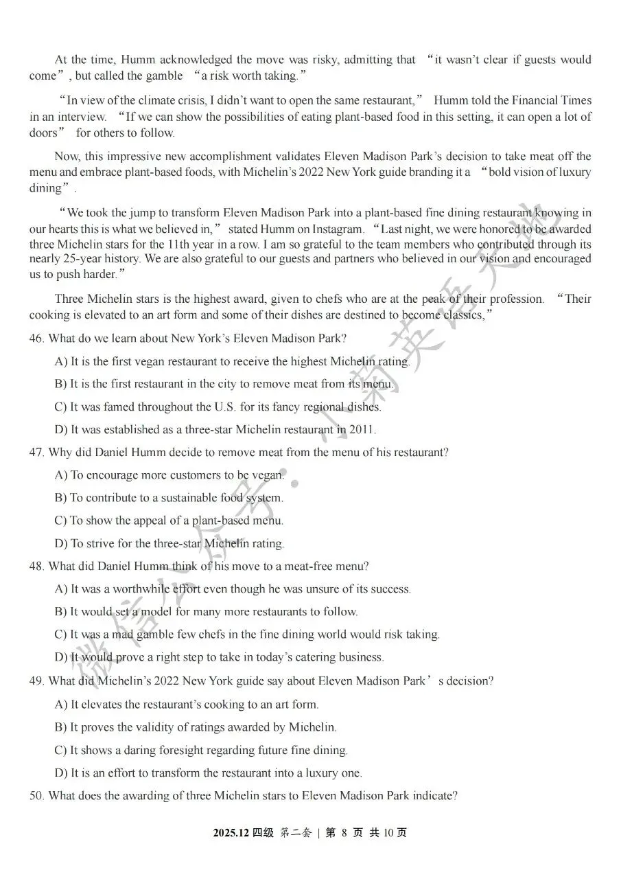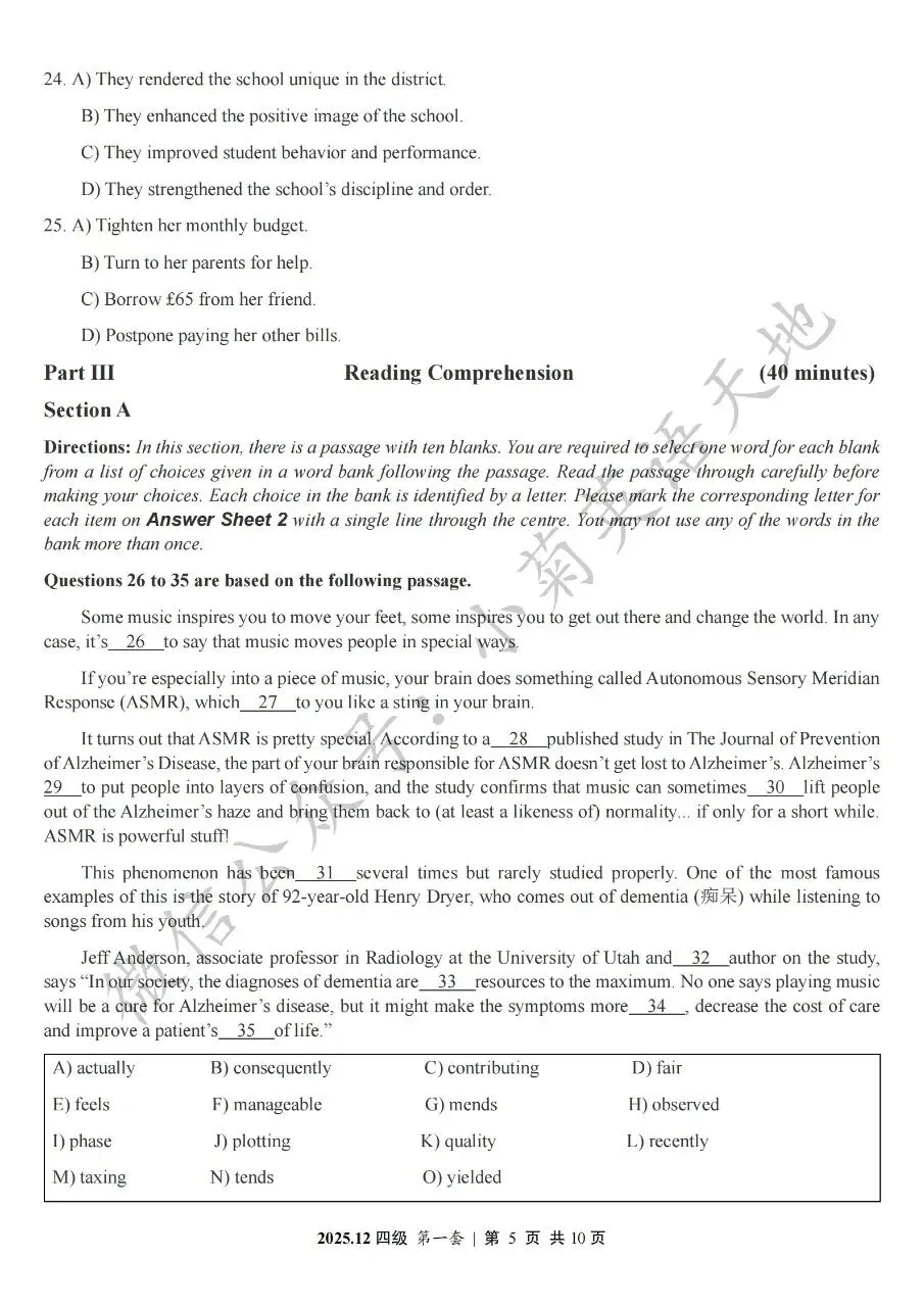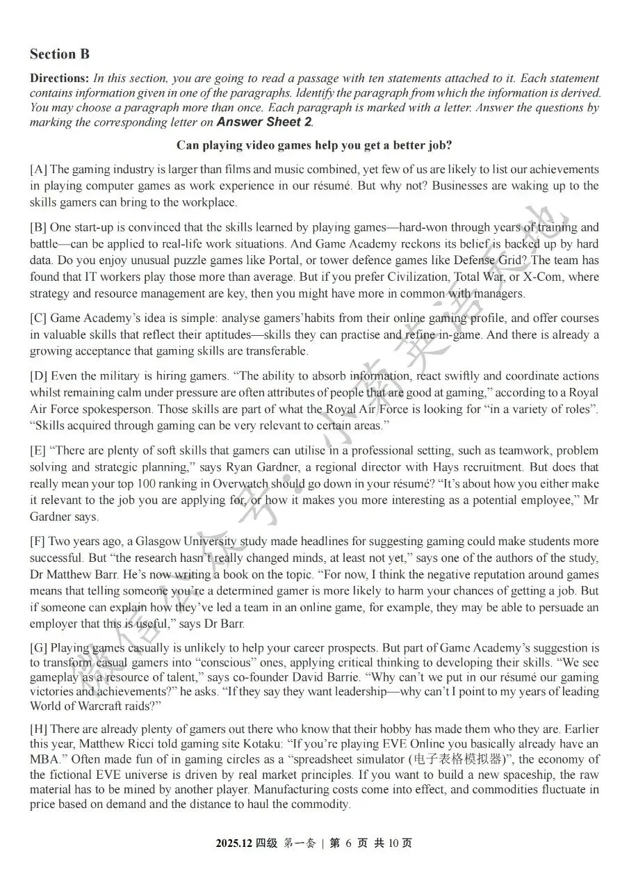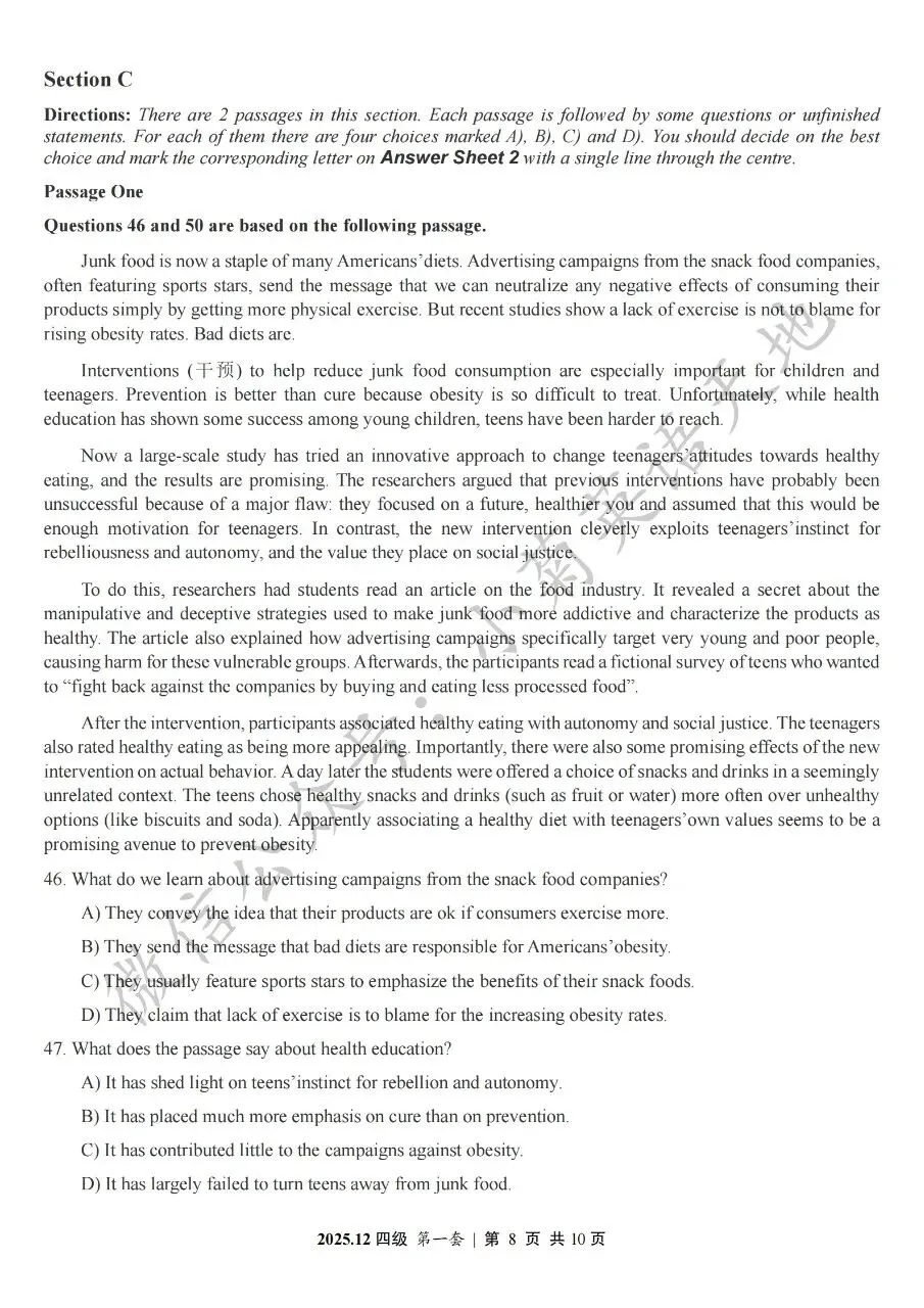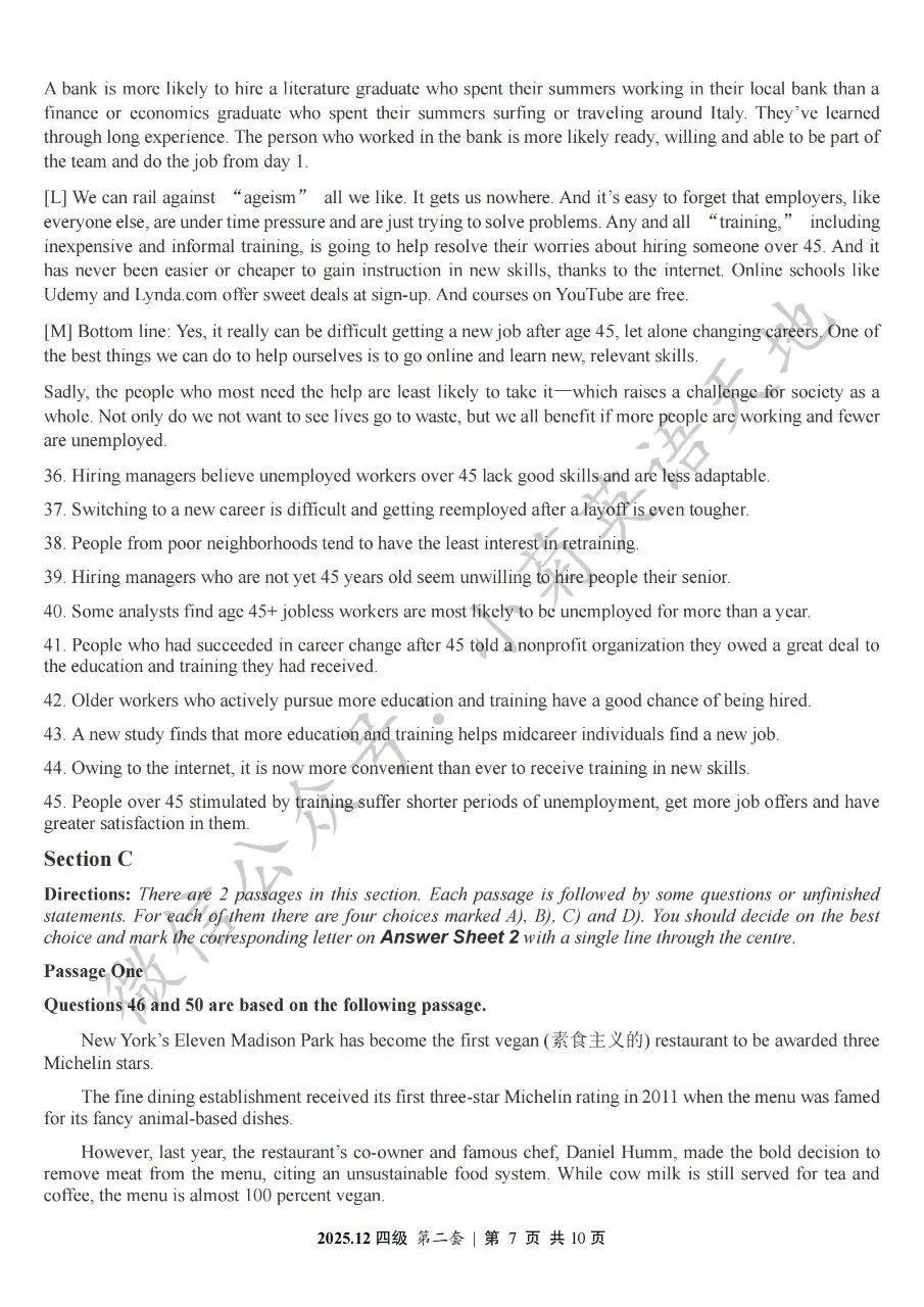 2026年6月大学英语四、六级考试在即,具体时间如下:为帮助广大考生演练四六级考试真题、提高做题质量与效率,近期我们将为大家陆续分享2025年6月、12月的大学英语四六级考试真题,同时包括答案与听力音频。本篇推文先为大家分享2025年12月大学英语四级考试真题(三套全)。需要注意的是,2025年12月全国大学英语四级考试只考两套听力,故第三套试题不含听力部分。可直接扫码或复制链接打开相应APP后转存后下载保存试题PDF文件以及听力音频MP3文件我用夸克网盘给你分享了「分享版N-202...第一套).pdf」,点击链接或复制整段内容,打开「夸克APP」即可获取。 /~0cb33Y8vWv~:/ 链接:https://pan.quark.cn/s/f7e6d85e9646我用夸克网盘给你分享了「分享版N-2025年12月大学英语四级考试(第二套).pdf」,点击链接或复制整段内容,打开「夸克APP」即可获取。