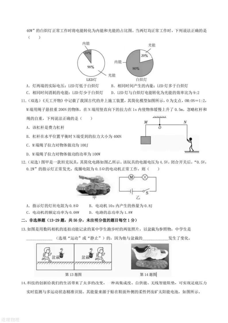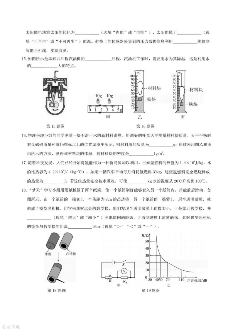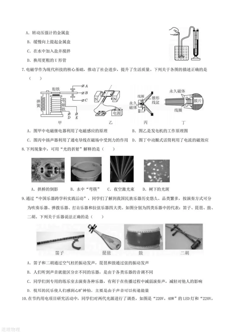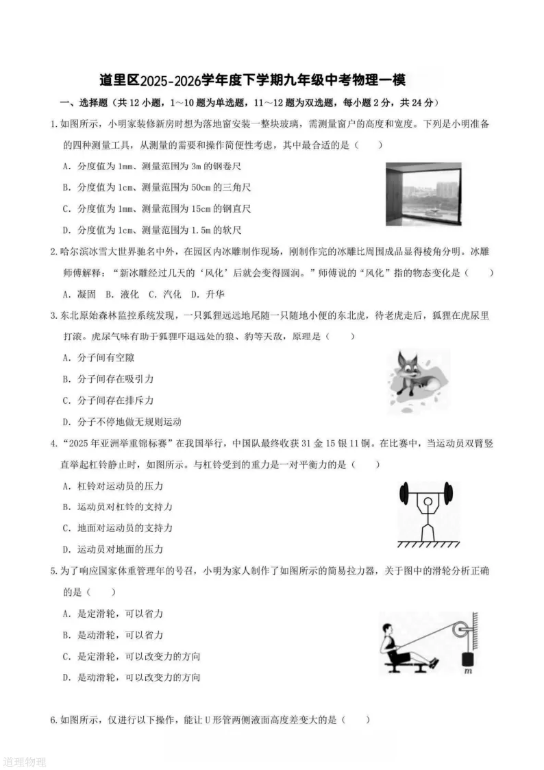 >2026哈尔滨道里区九年级下物理一模 试卷+答案