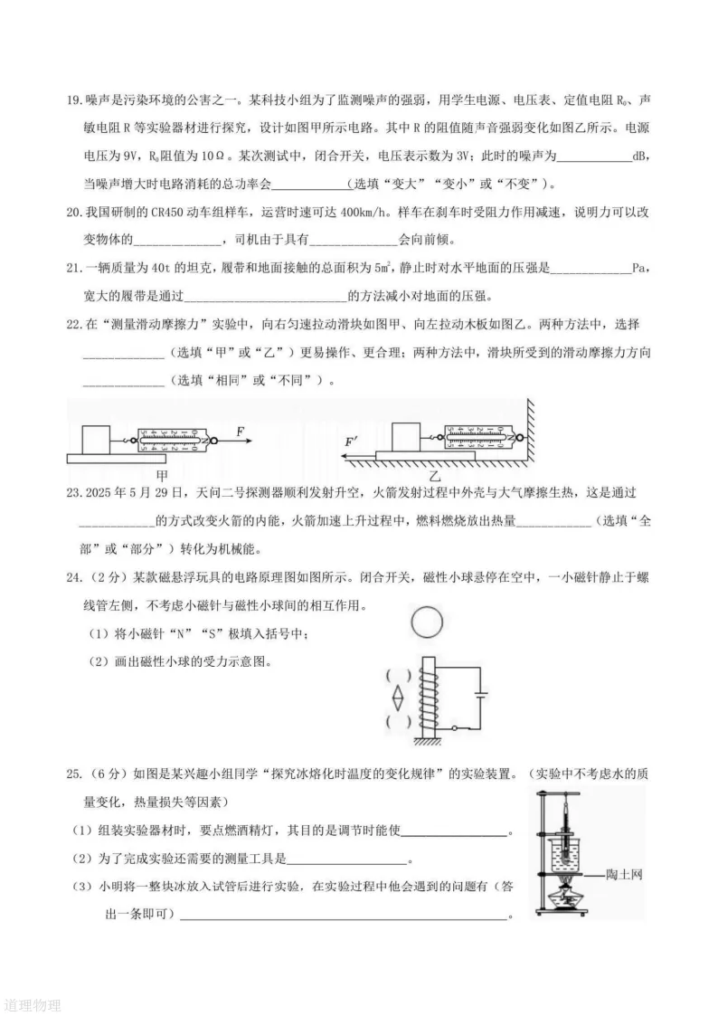 物理 2025-2026中考适应试卷