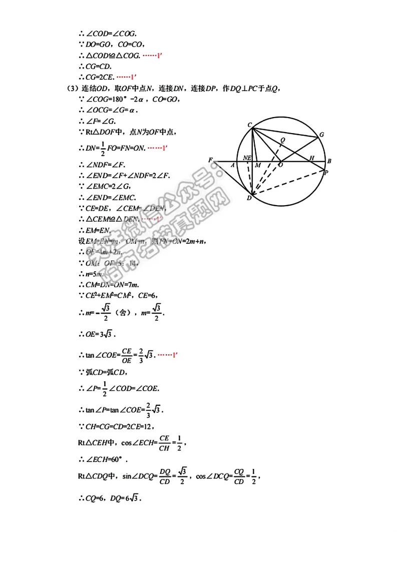 >2026哈尔滨香坊区九年级下数学一模 试卷+答案