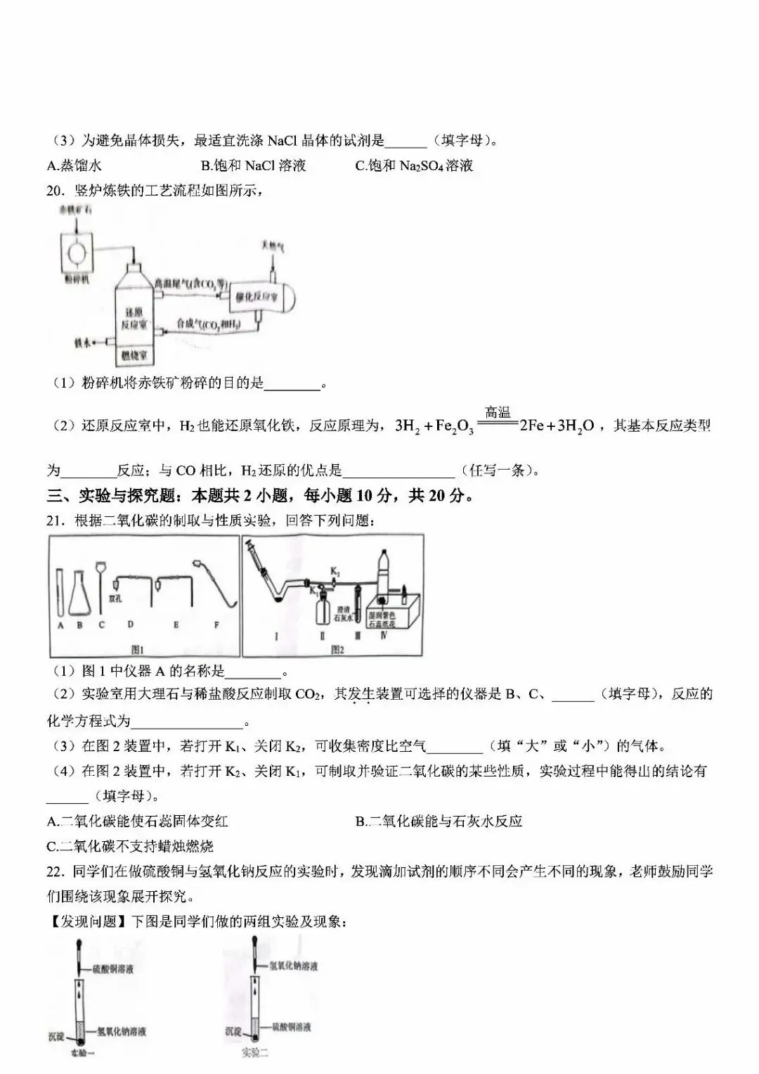 湘潭市一模化学试卷