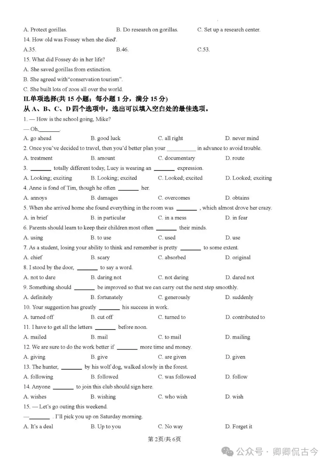 【目录5】高中英语单选题大全(持续更新中~)