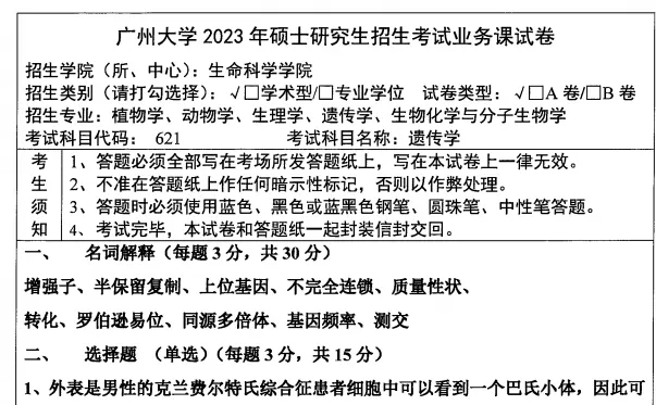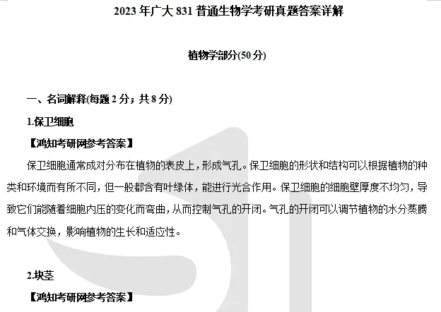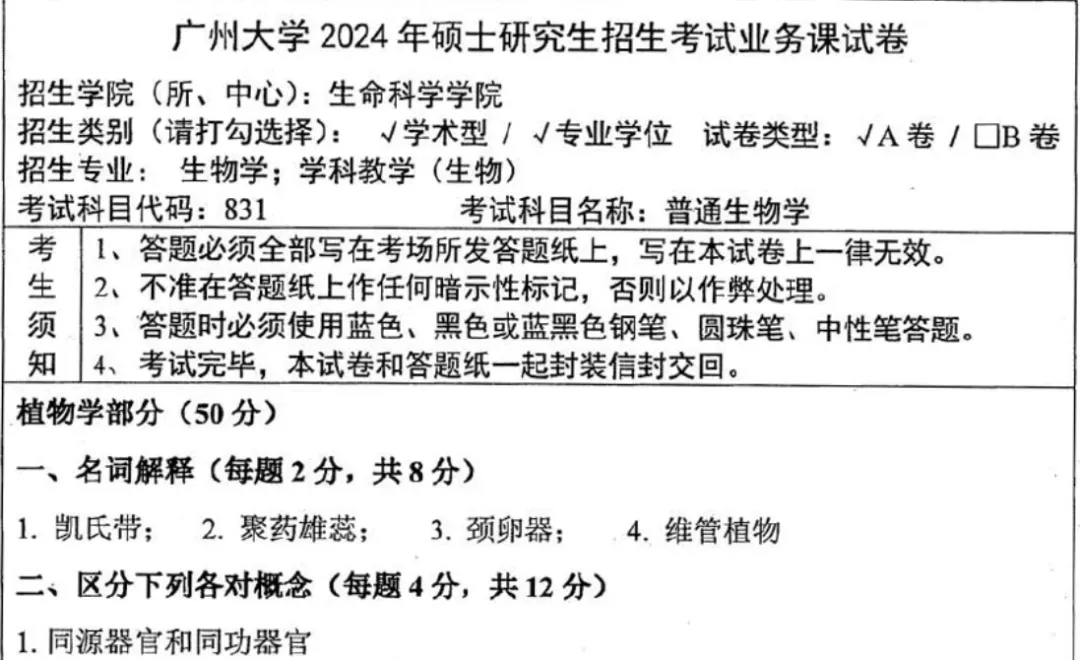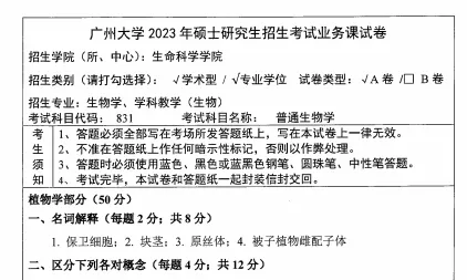 2012-2023年广州大学831普通生物学考研真题答案详解