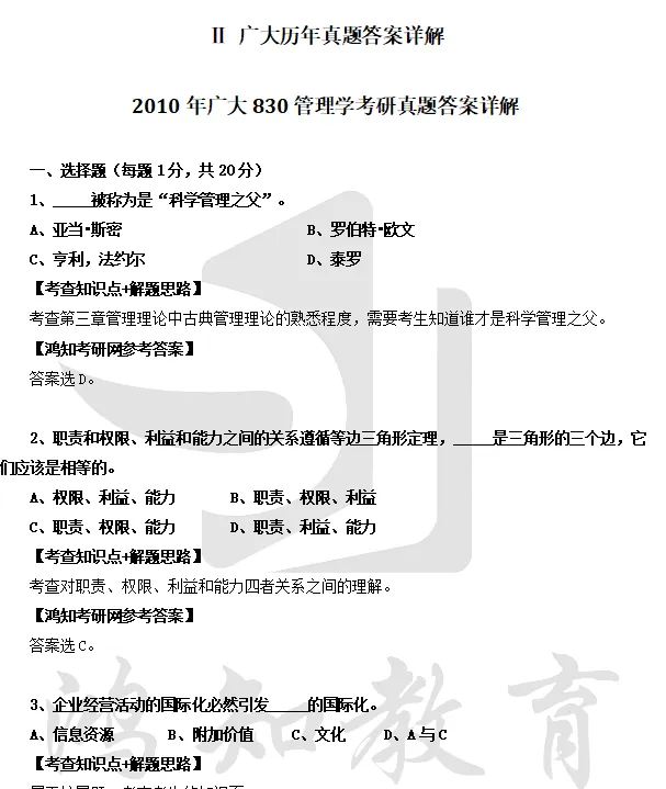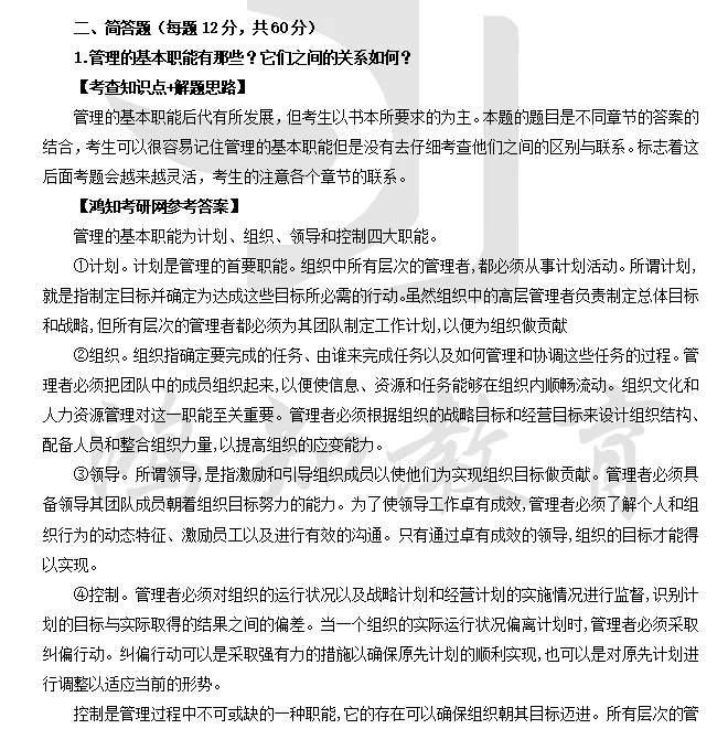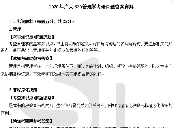 2012-2020年广州大学830管理学考研真题答案详解