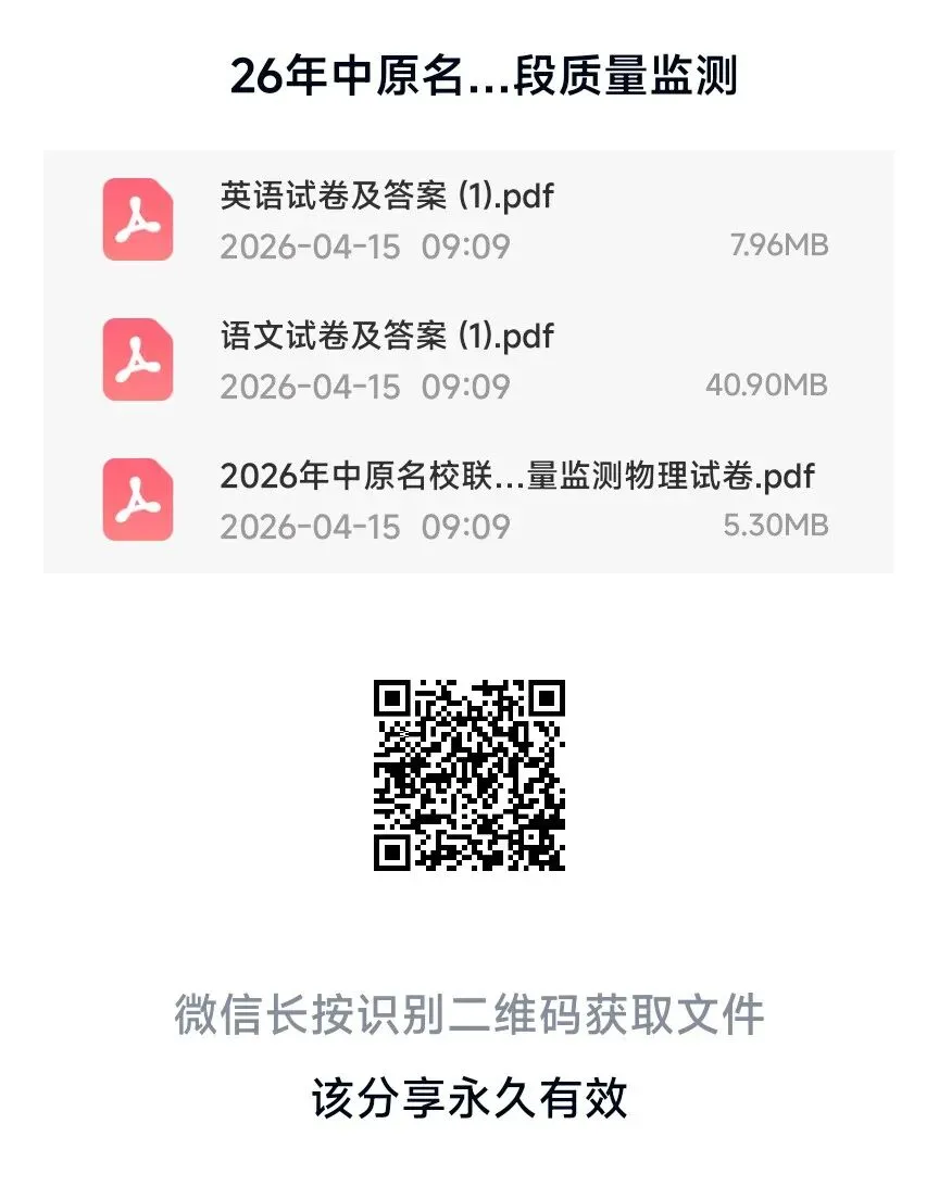 通过百度网盘分享的文件:26年中原名校联…链接:https://pan.baidu.com/s/153dzvmDQC0o2Z8xamFT0Sw?pwd=b26n 复制这段内容打开「百度网盘APP 即可获取」
