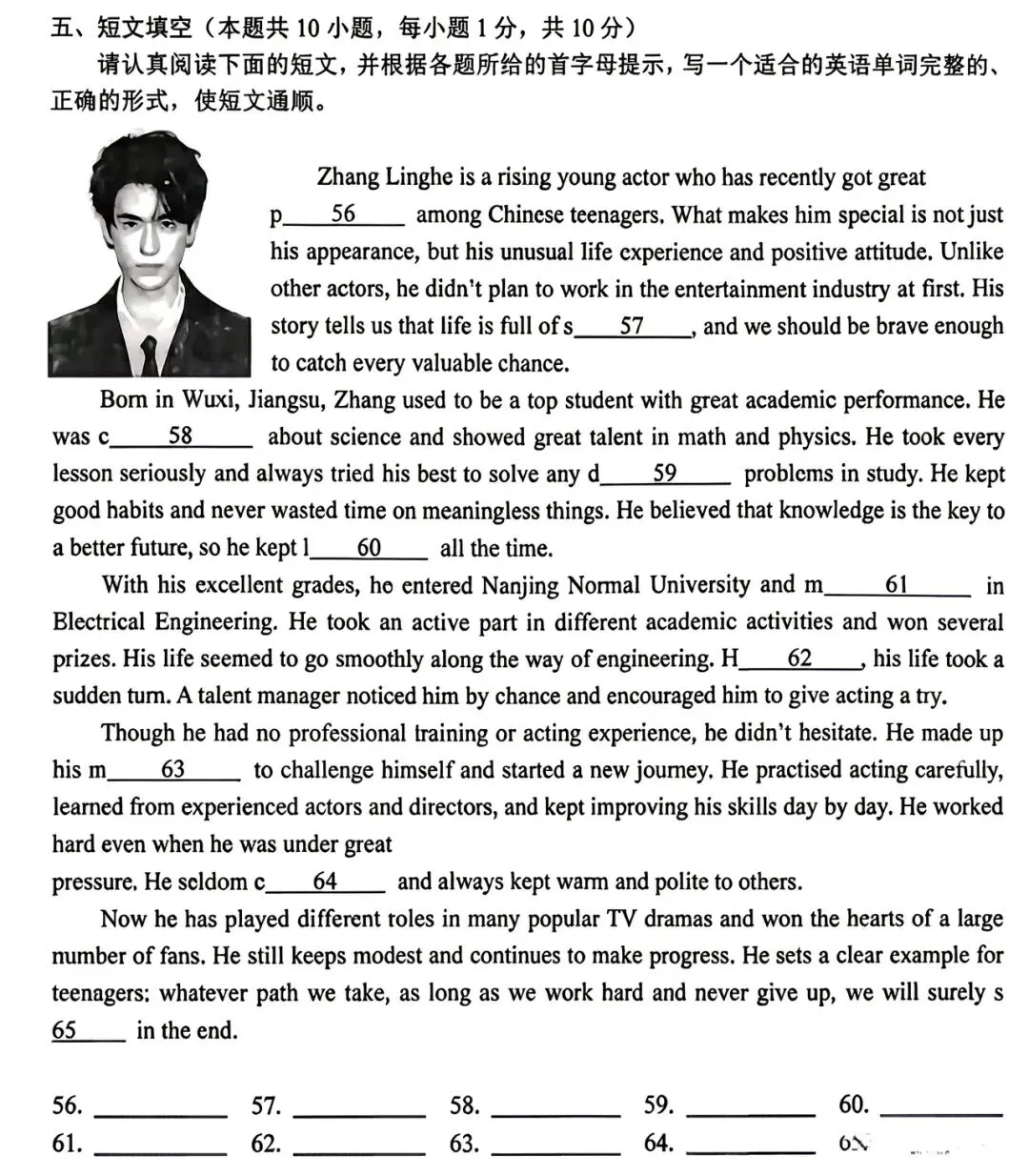 56. popularity57. surprises58. curious59. difficult60. learning61. majored62. However63. mind64. complained65. succeed