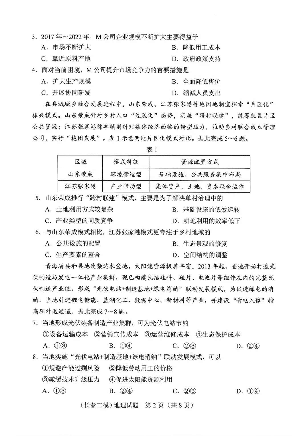 长春市第二次模拟测试